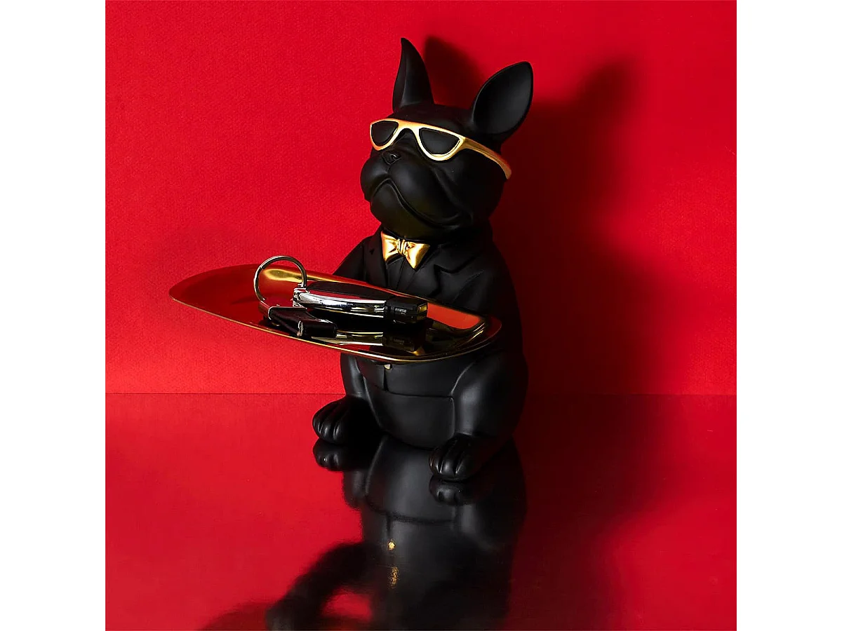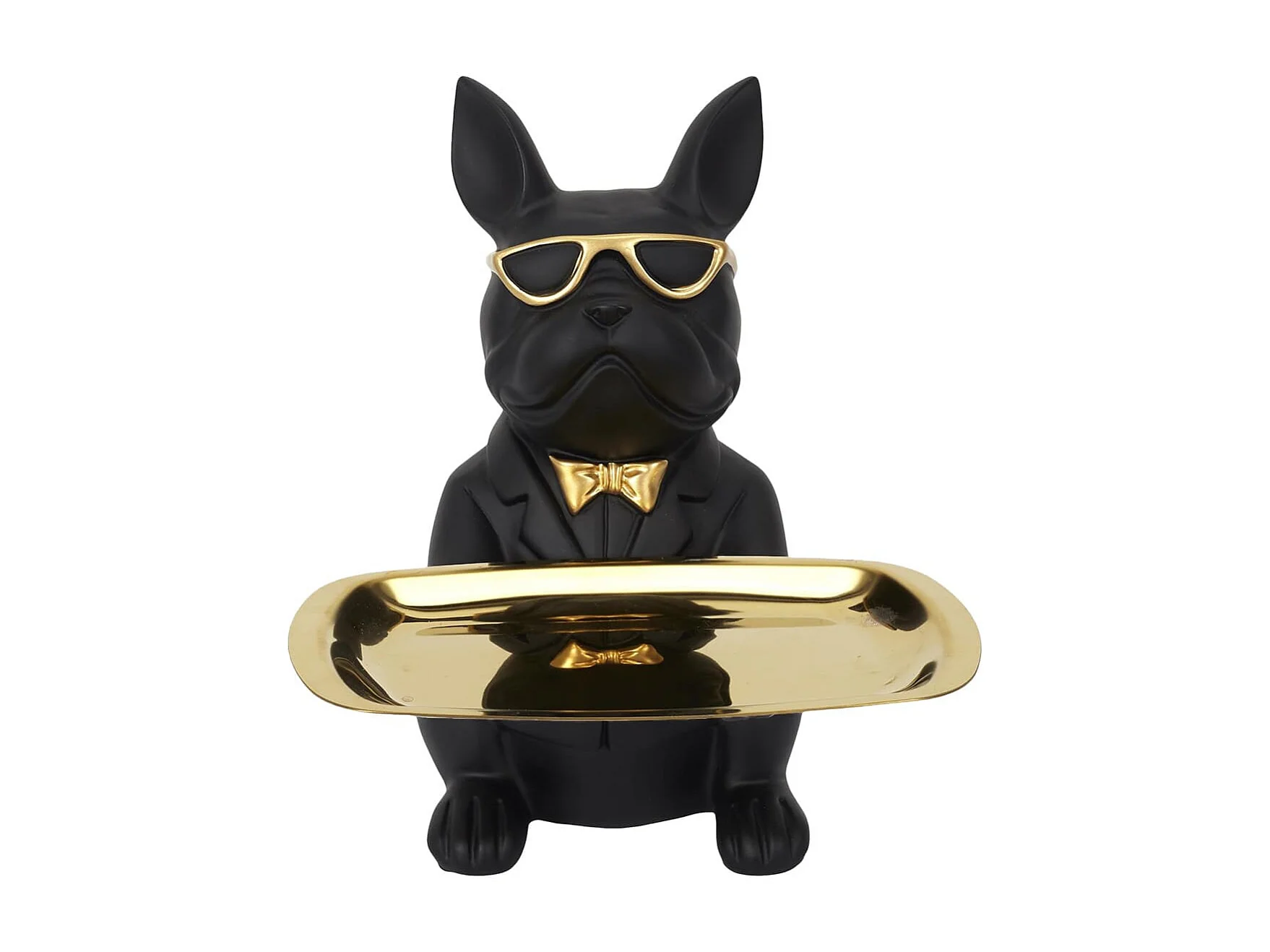 Vide-Poche Bulldog Noir et Or Plateau Servi - MANIA