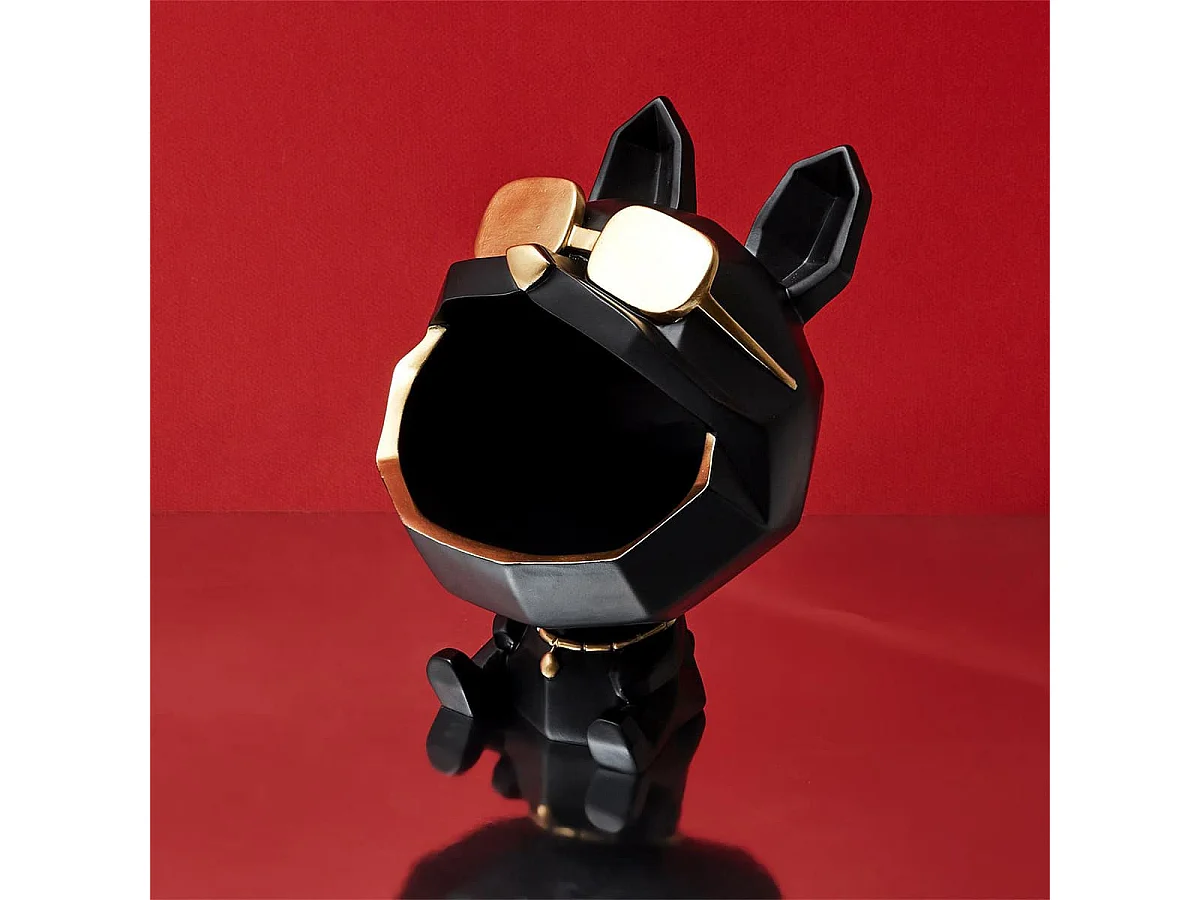 Vide-Poche Chien à Lunettes Géométrique Noir et Or - LOOKY