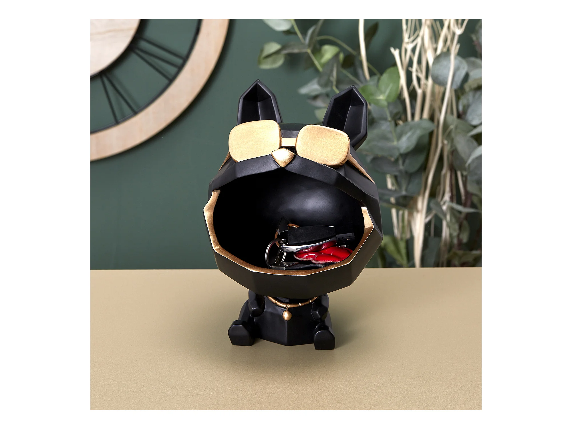 Statue Bulldog Noir Vide Poche Or, Noir
