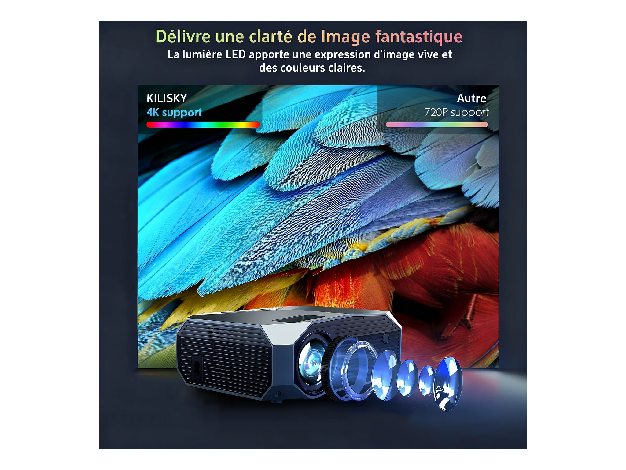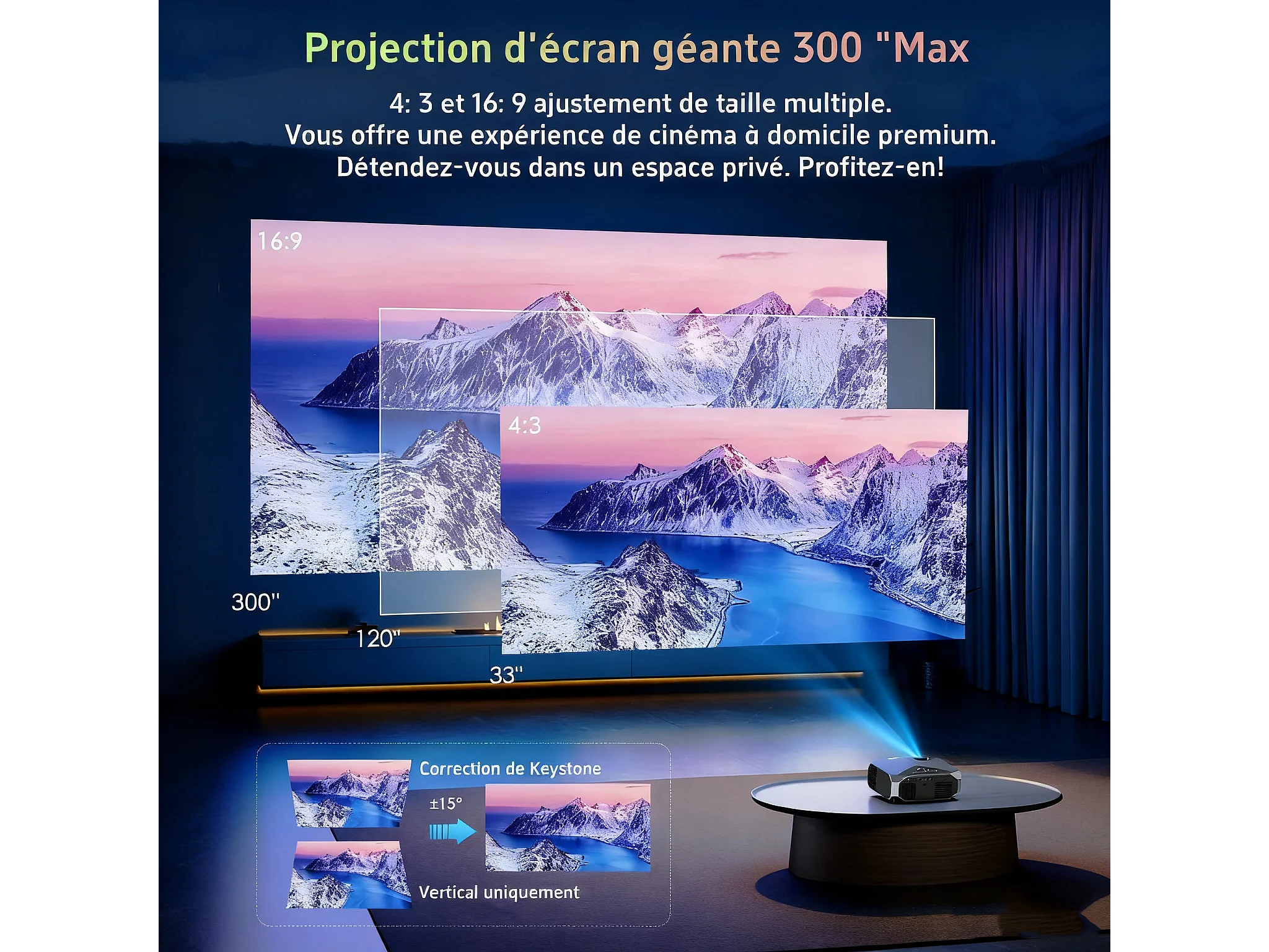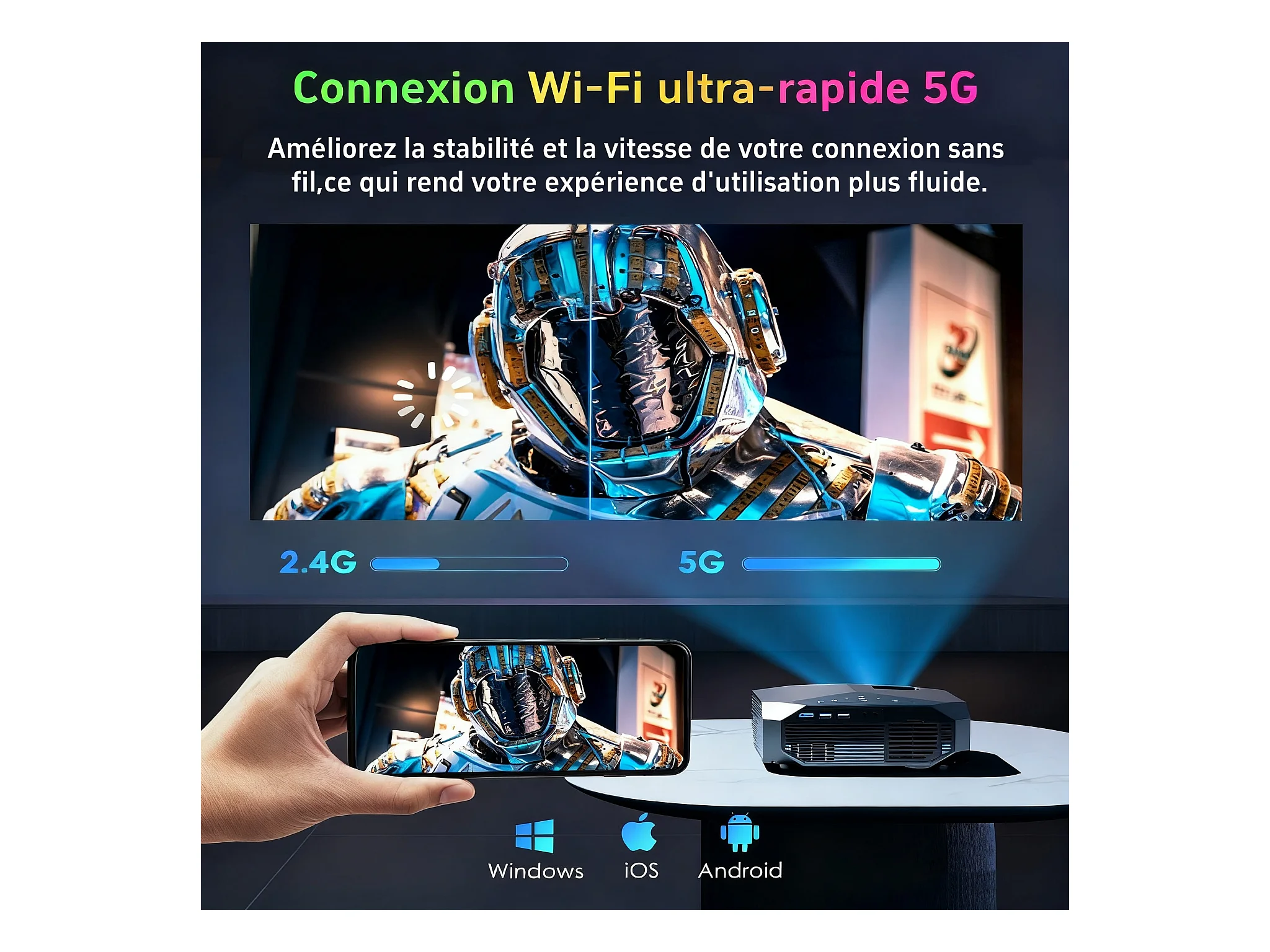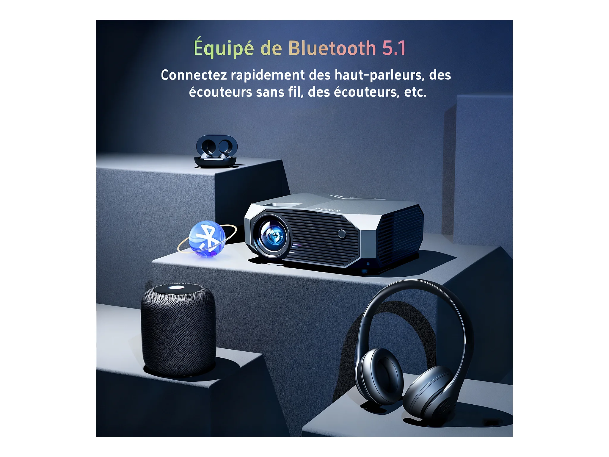 Videoprojecteur Wifi Bluetooth 4K,25000 Lumens,Full HD Native 1080P,WiFi Bluetooth5.1 Vidéoprojecteur,Home Cinéma