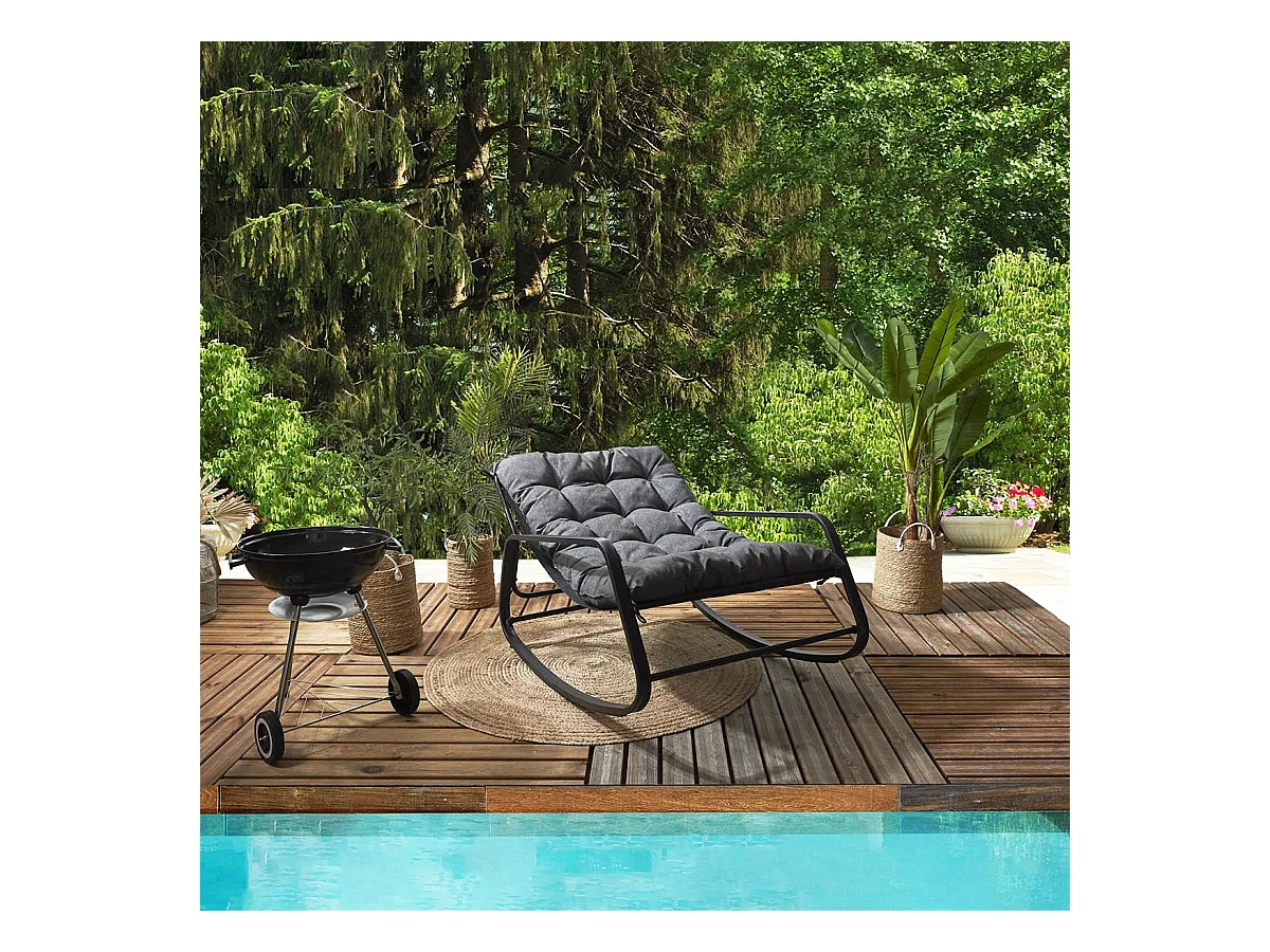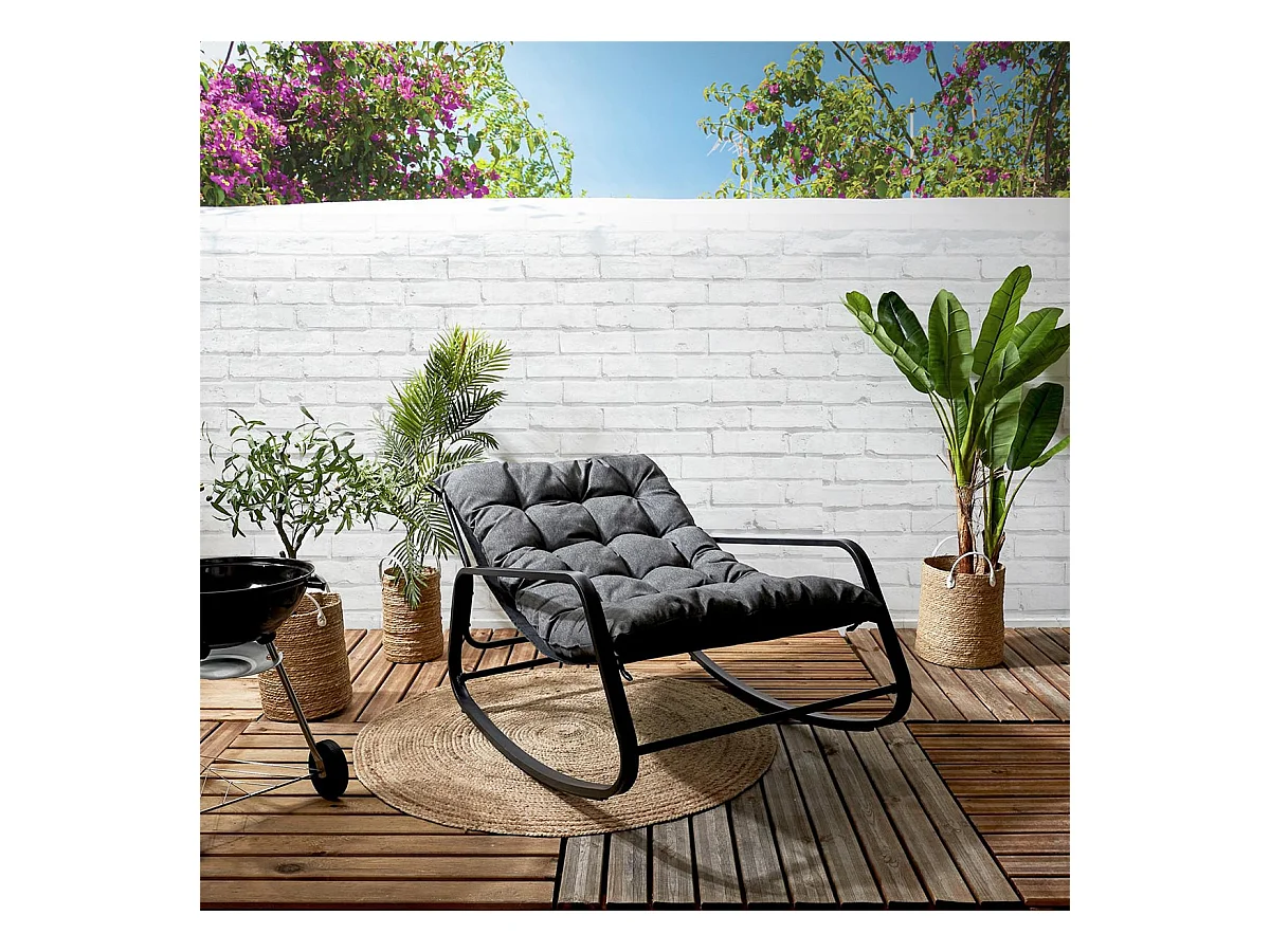 VIDIA - Fauteuil à Bascule Anthracite avec Coussin Capitonné