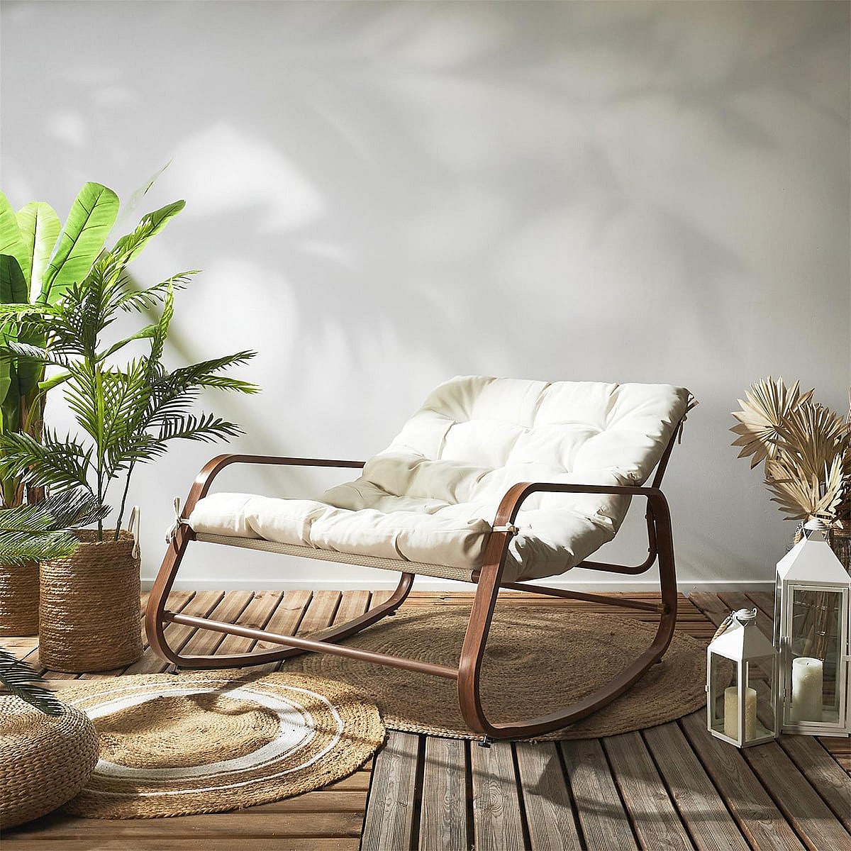 VIDIA - Fauteuil à Bascule Effet Bois avec Coussin Capitonné