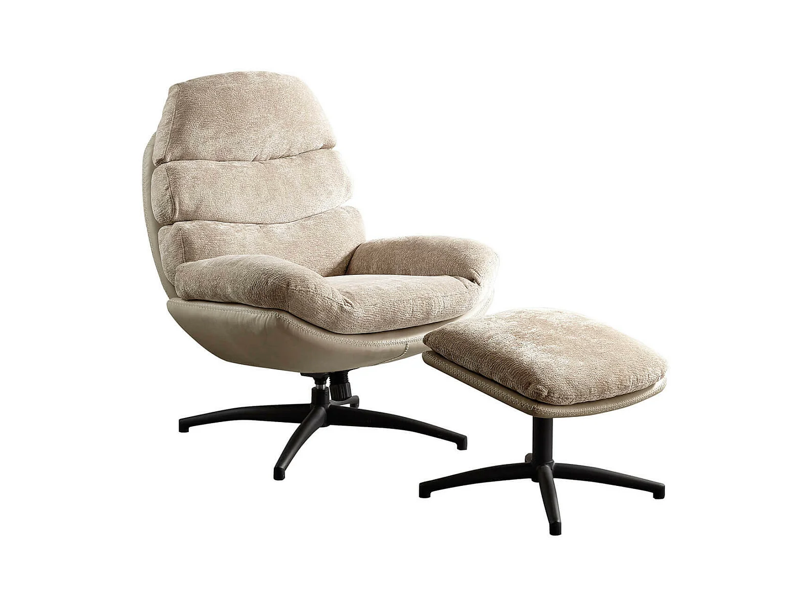 VIGO - Fauteuil Pivotant avec Repose Pieds Bi-Matière Beige