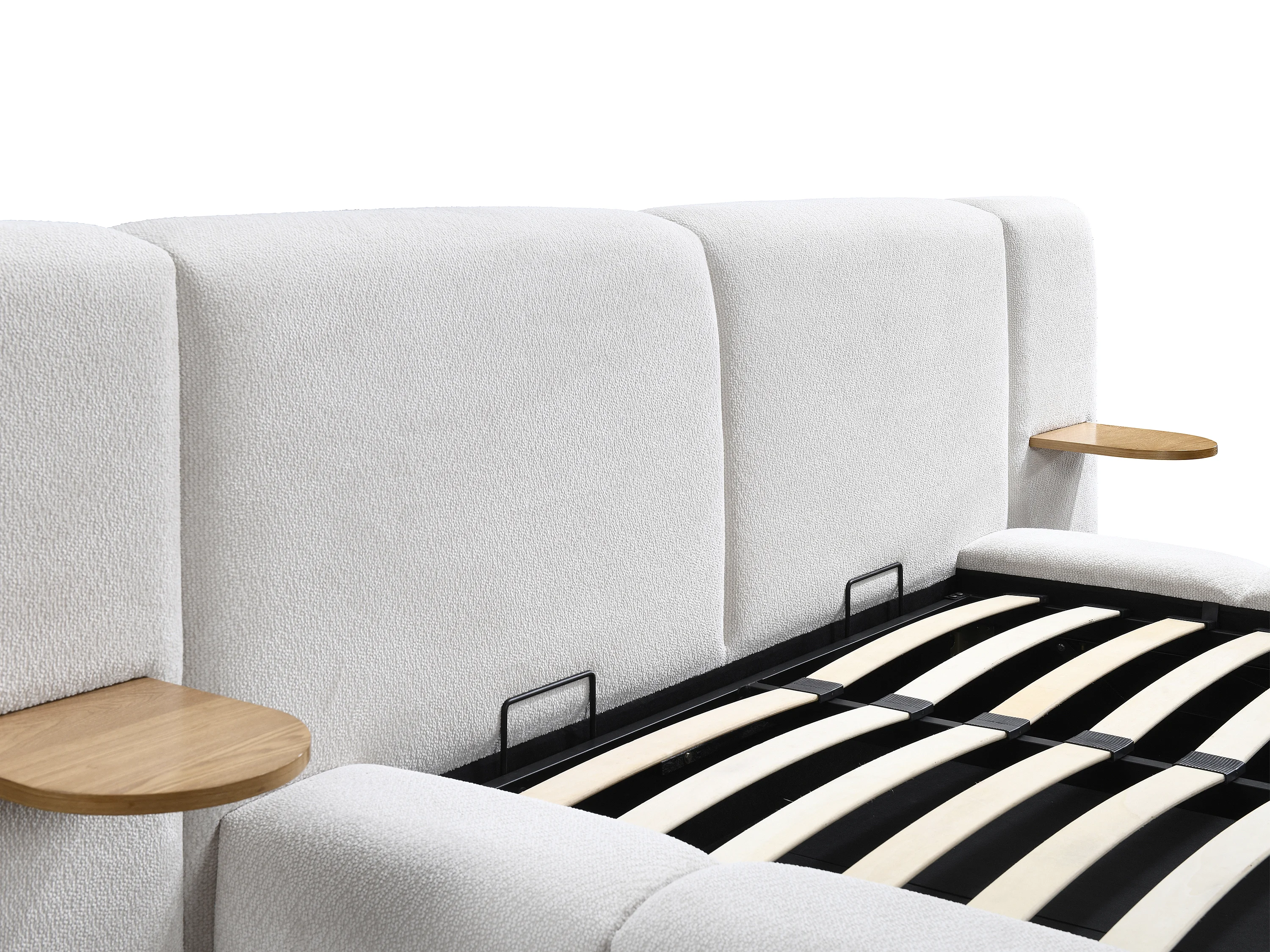 Lit coffre avec chevets 160 x 200cm – Tissu bouclette – Beige – VILACO