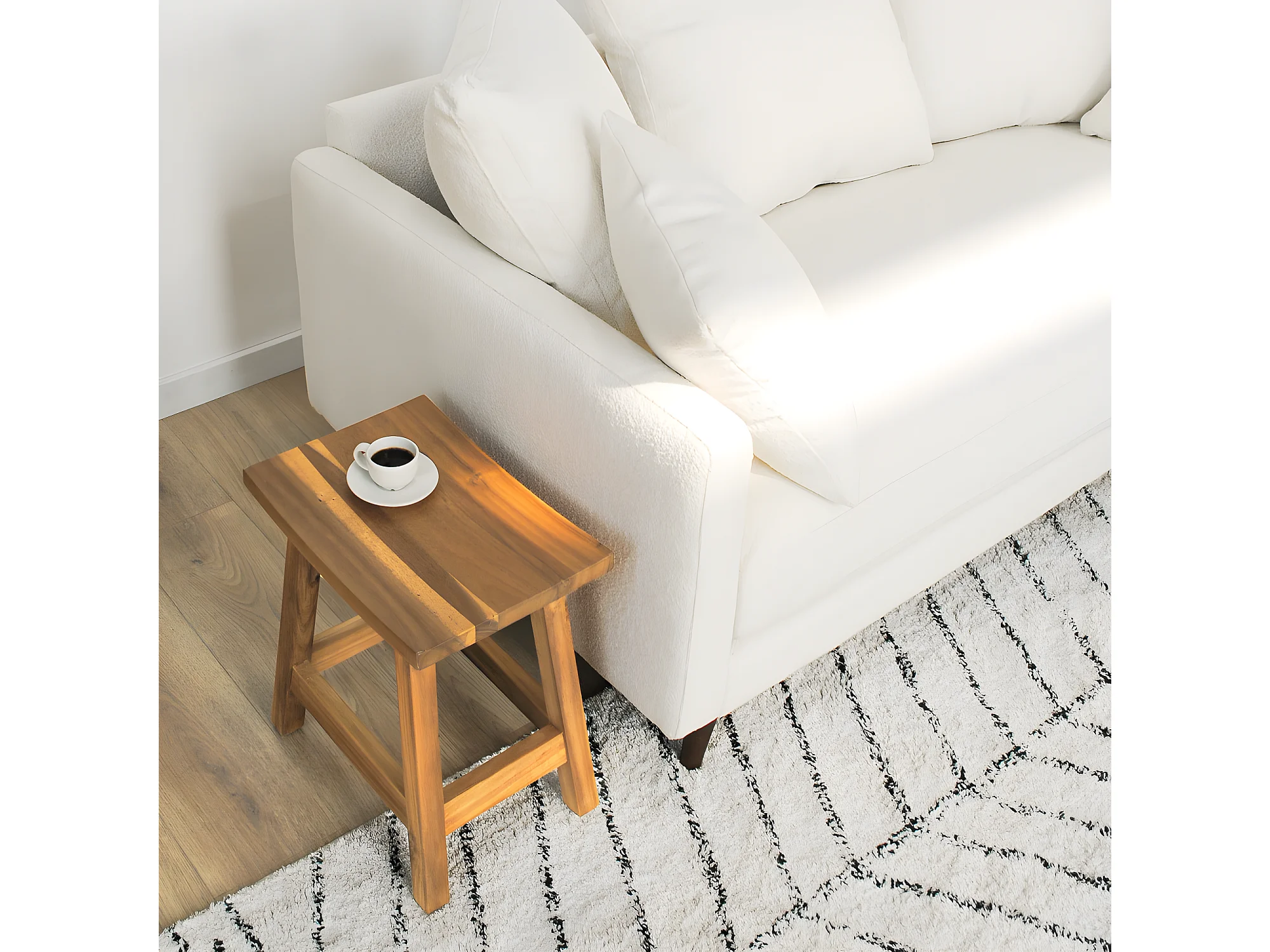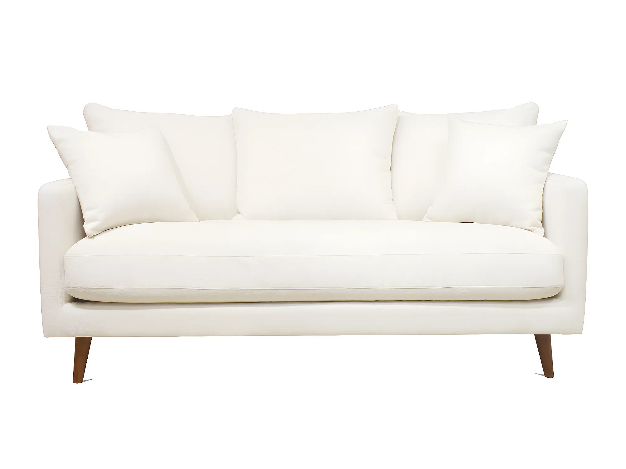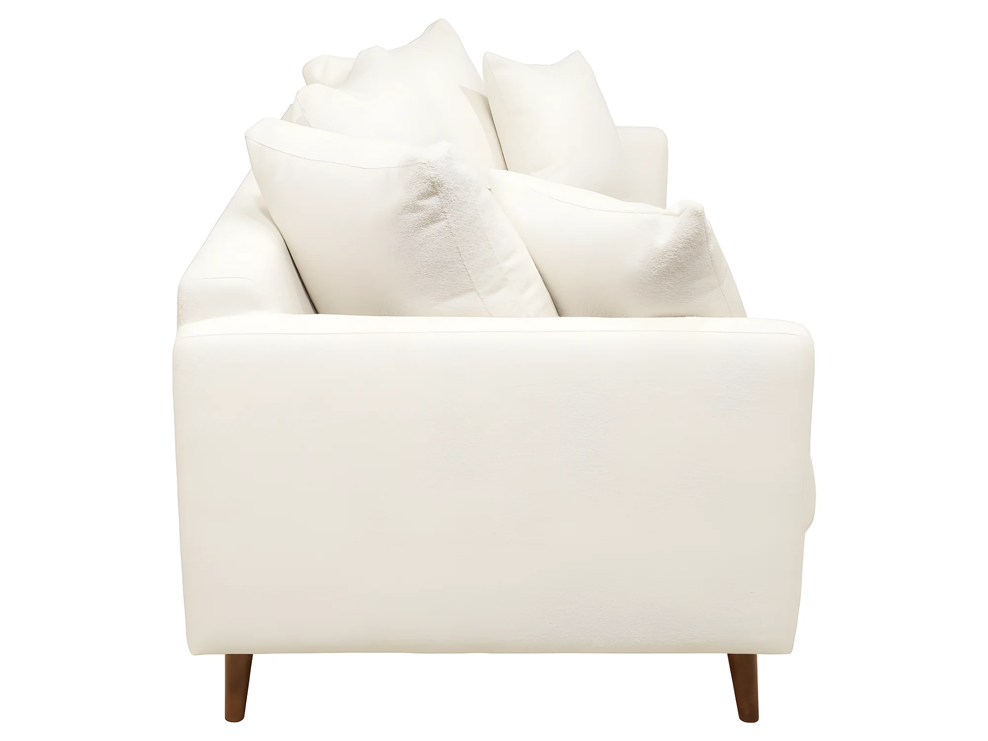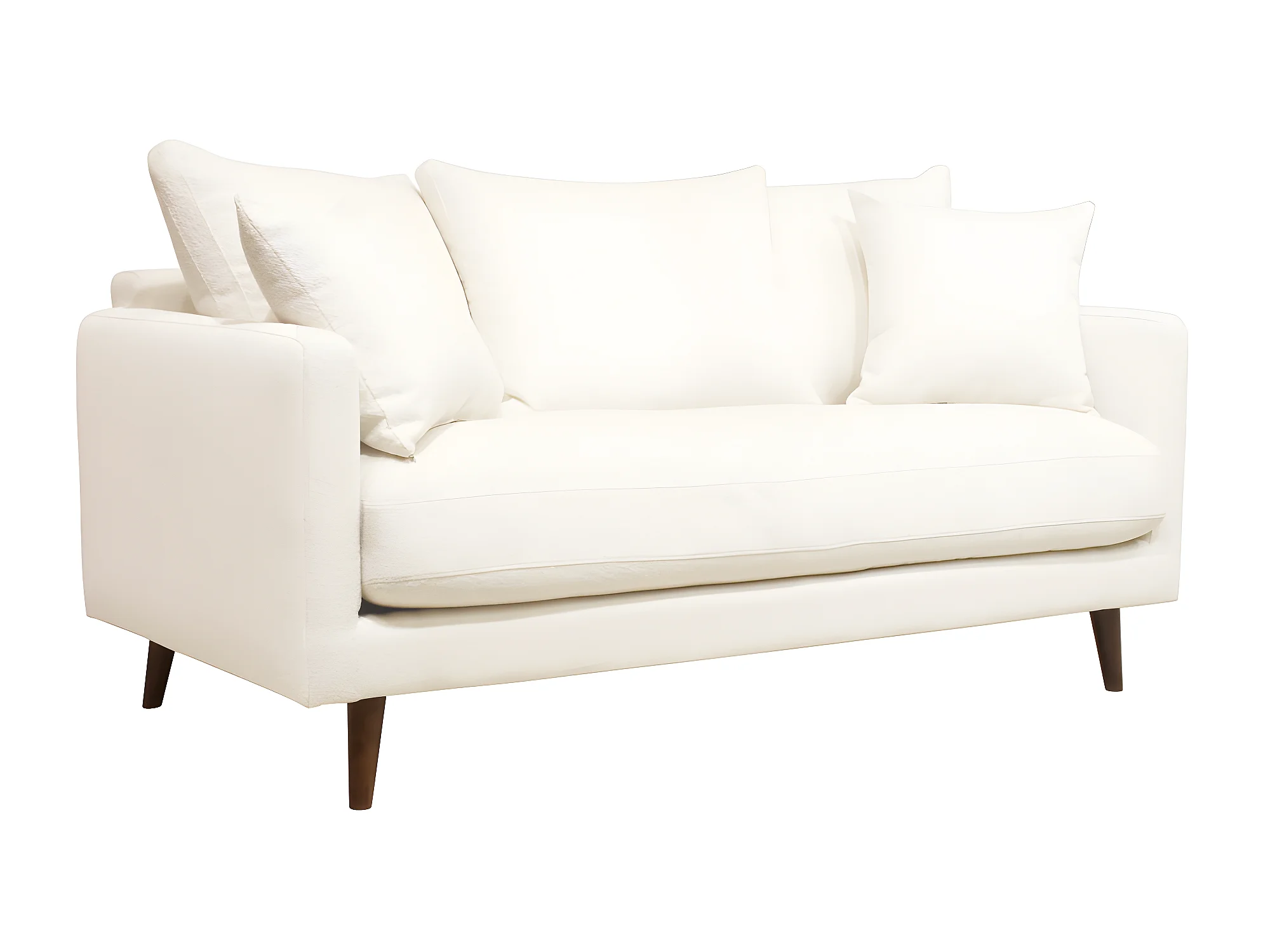 Villabon - Canapé 3 places en tissu bouclette pieds bois - Blanc ivoire