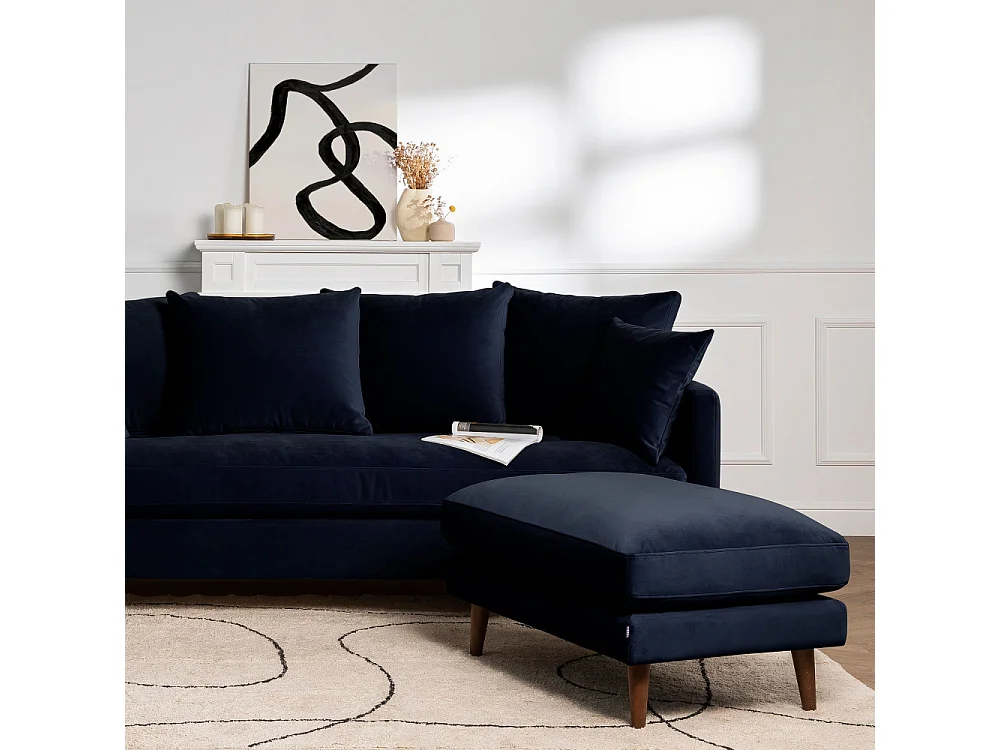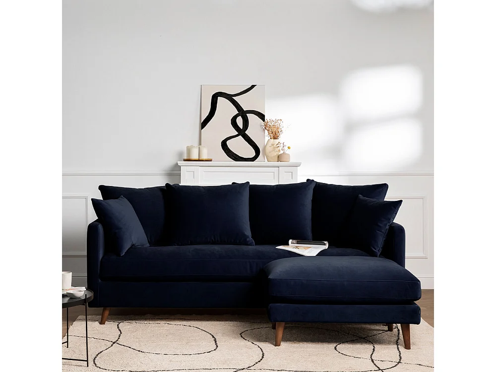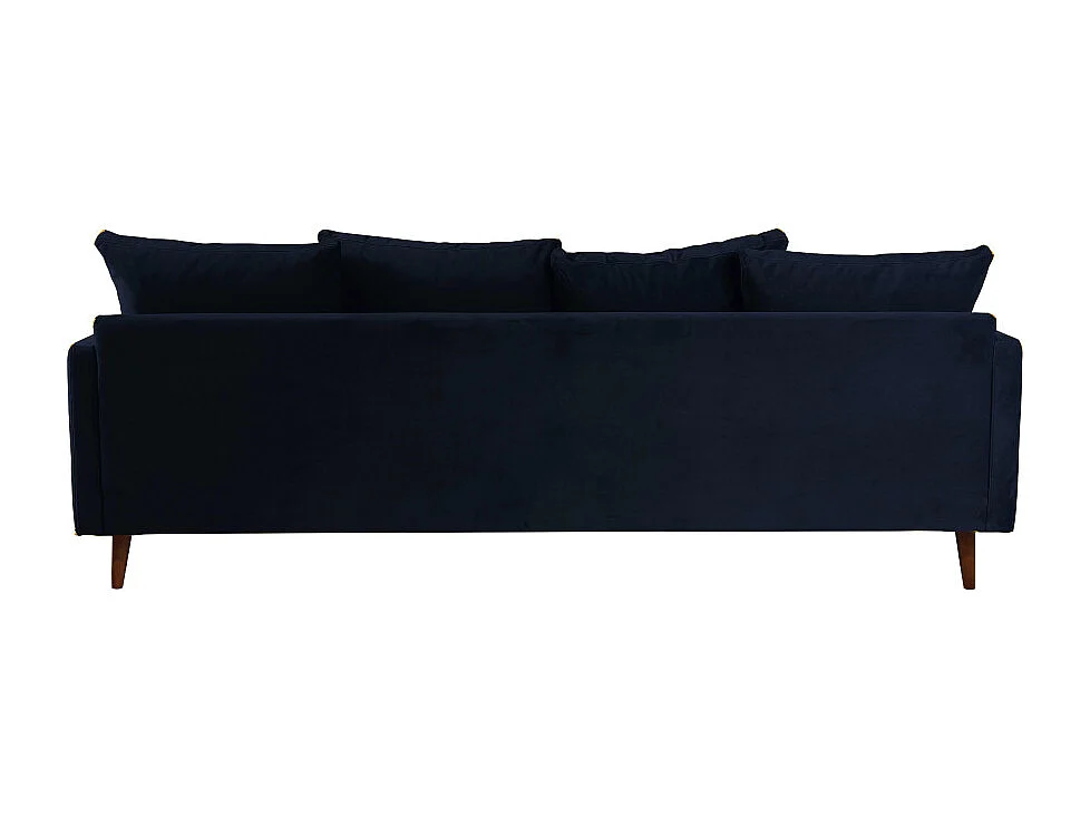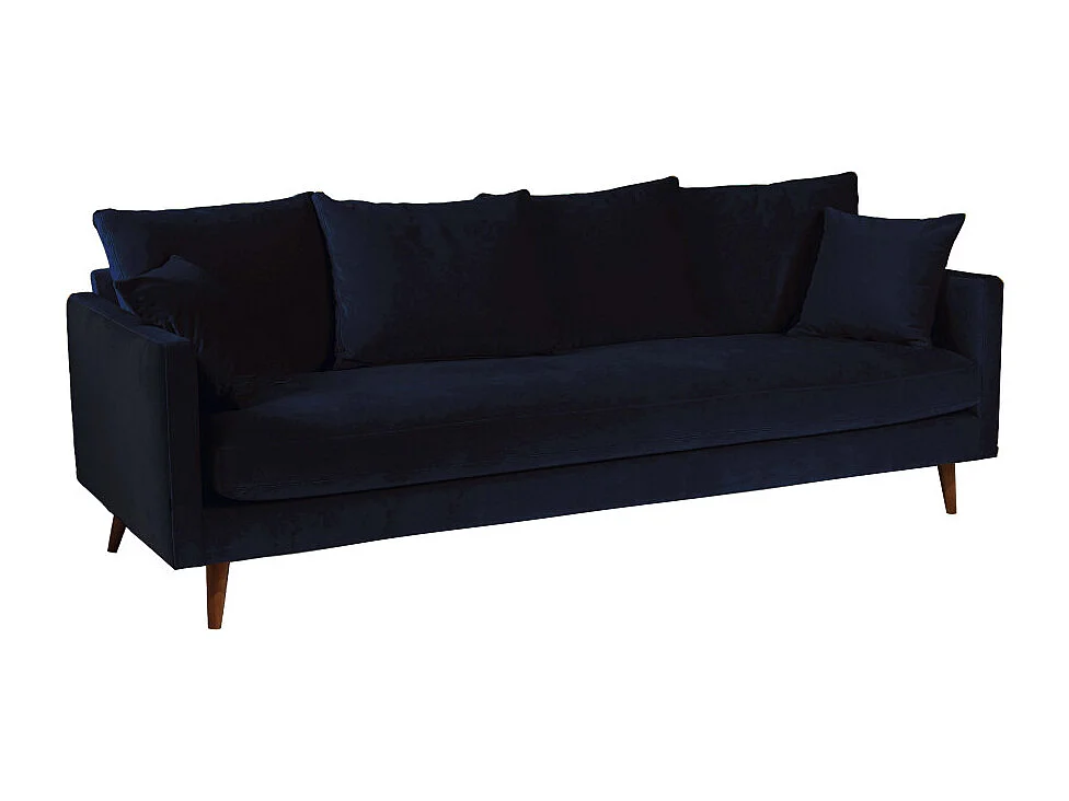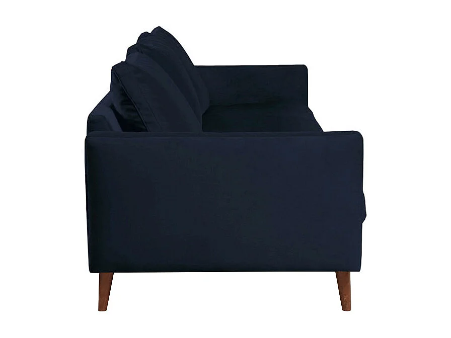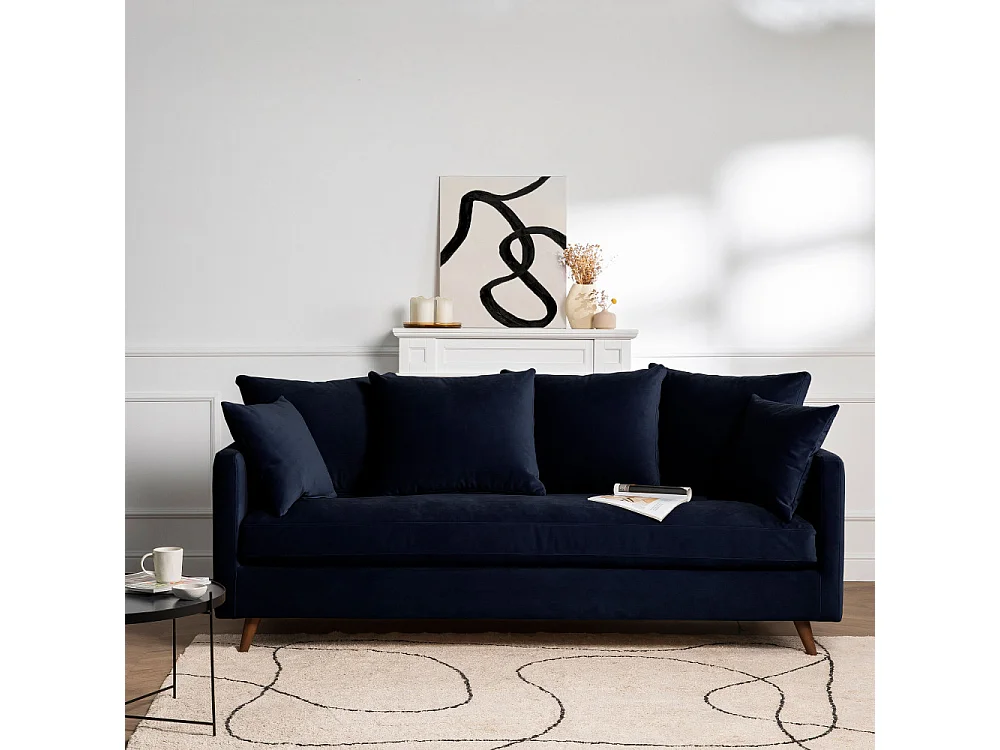 Villabon - Canapé convertible 3 places en velours pieds bois foncé - Bleu marine