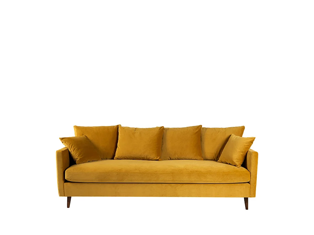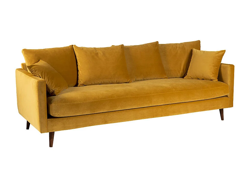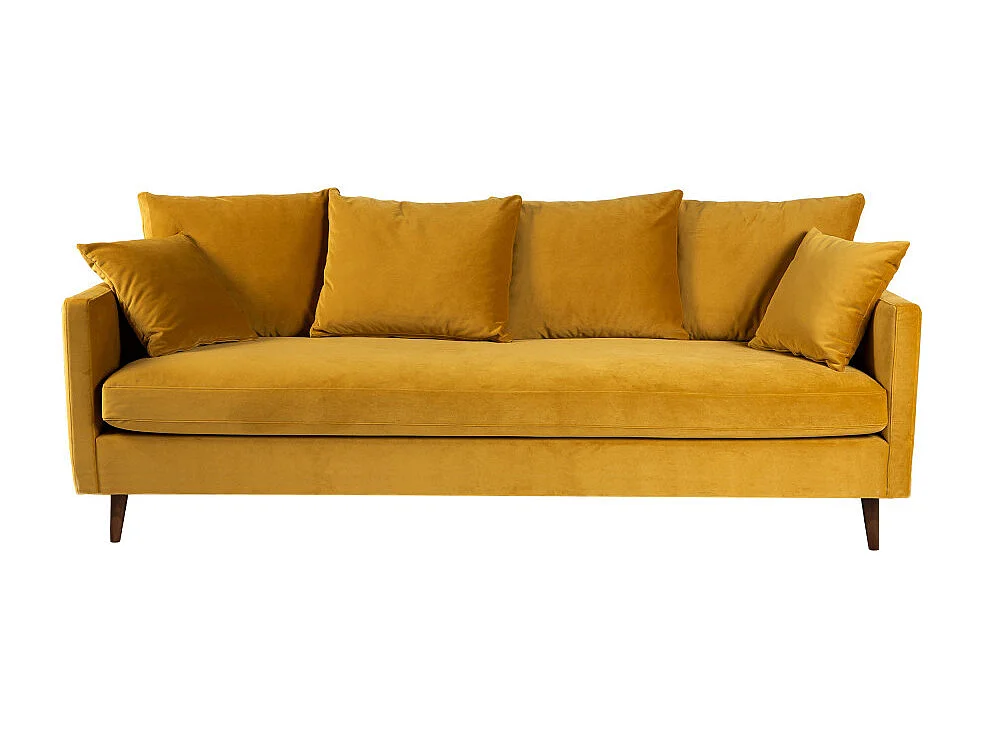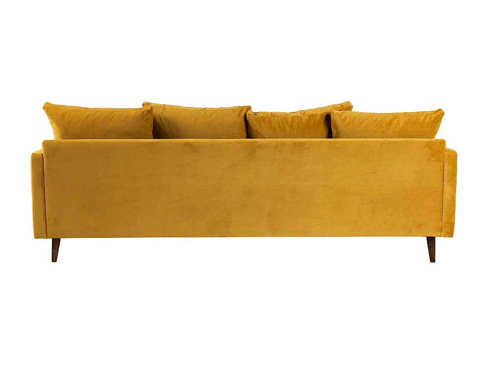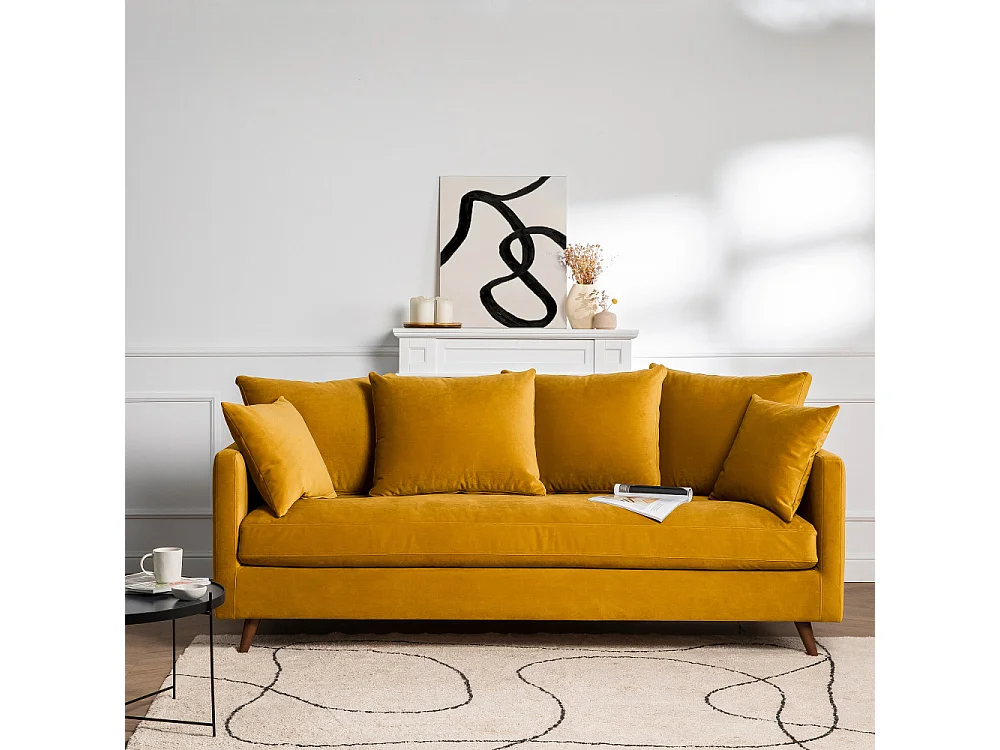 Villabon - Canapé convertible 3 places en velours pieds bois foncé - Jaune moutarde