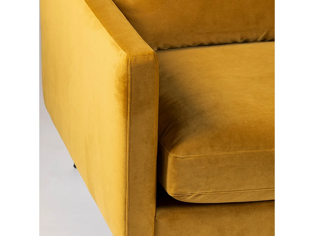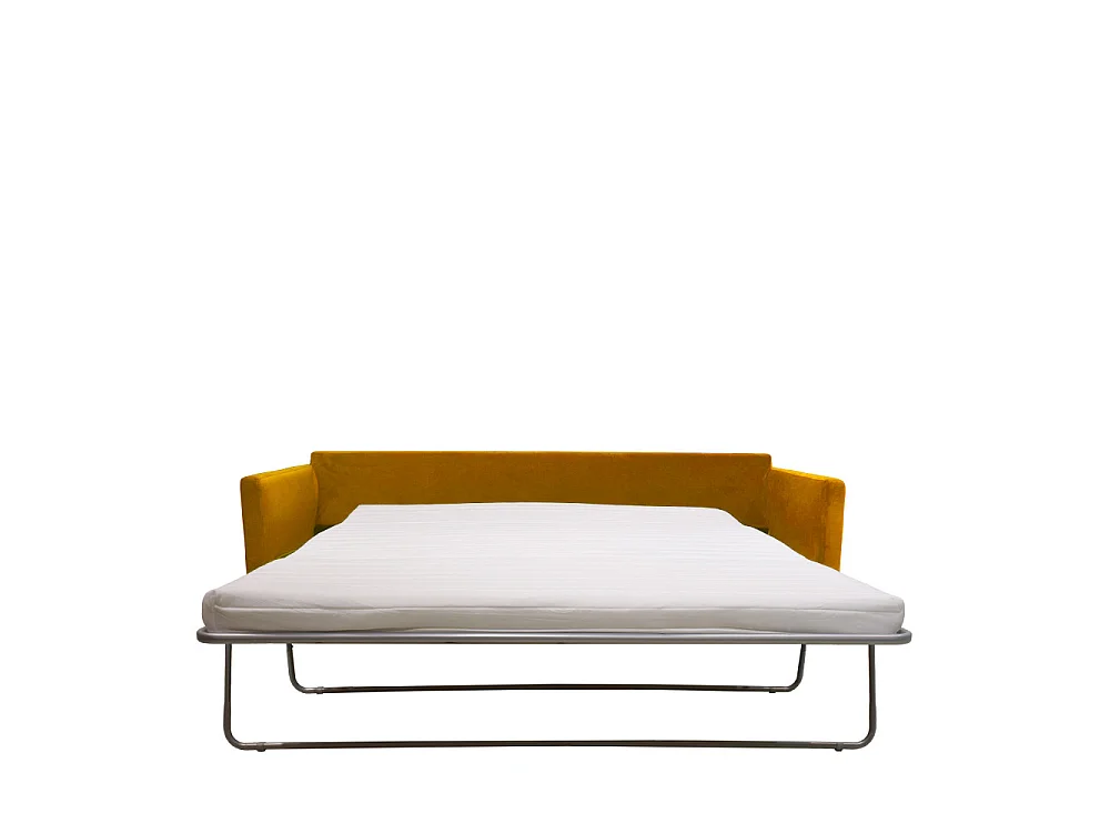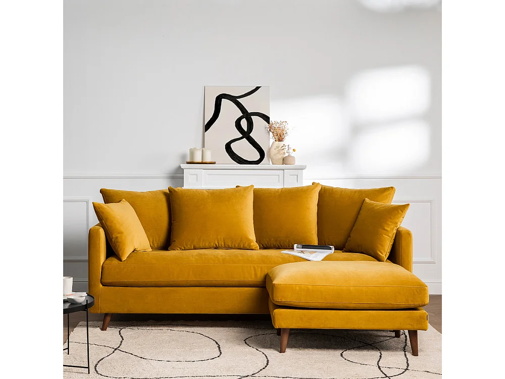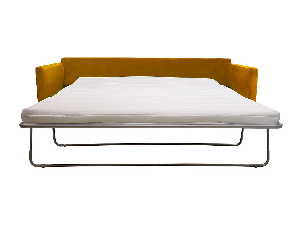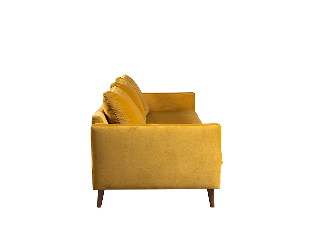 Villabon - Canapé convertible 3 places en velours pieds bois foncé - Jaune moutarde
