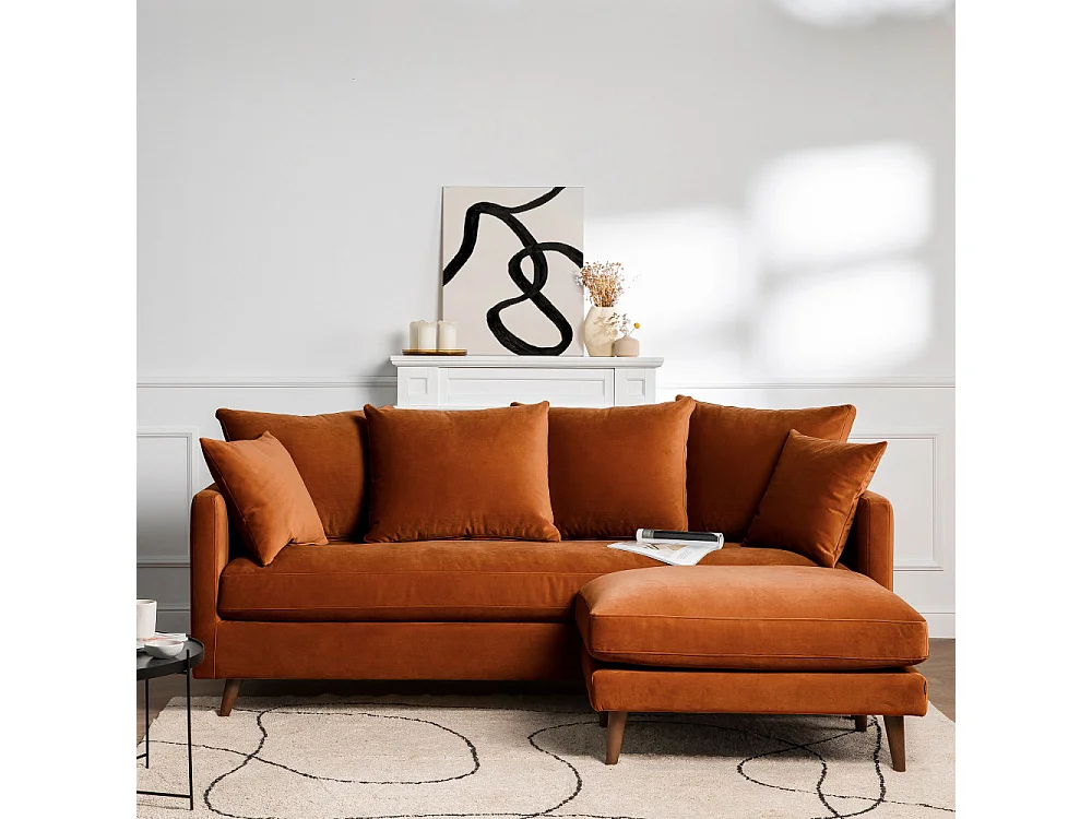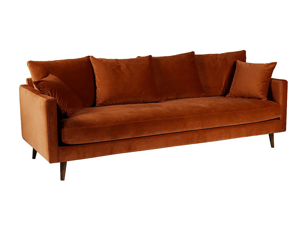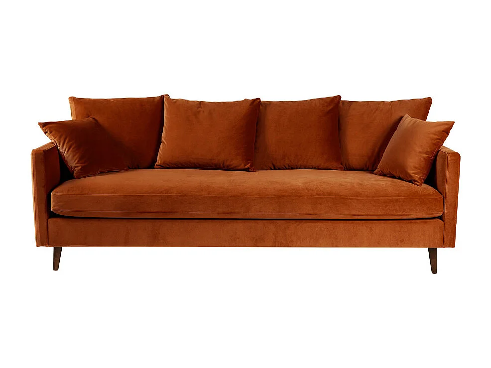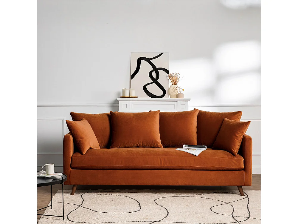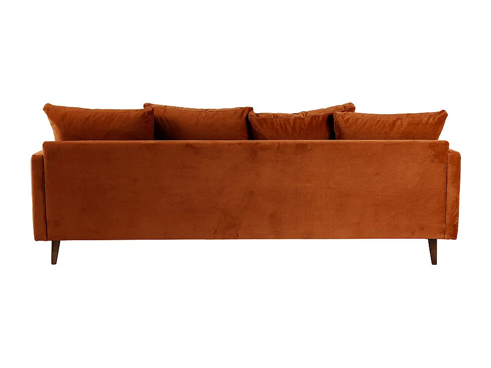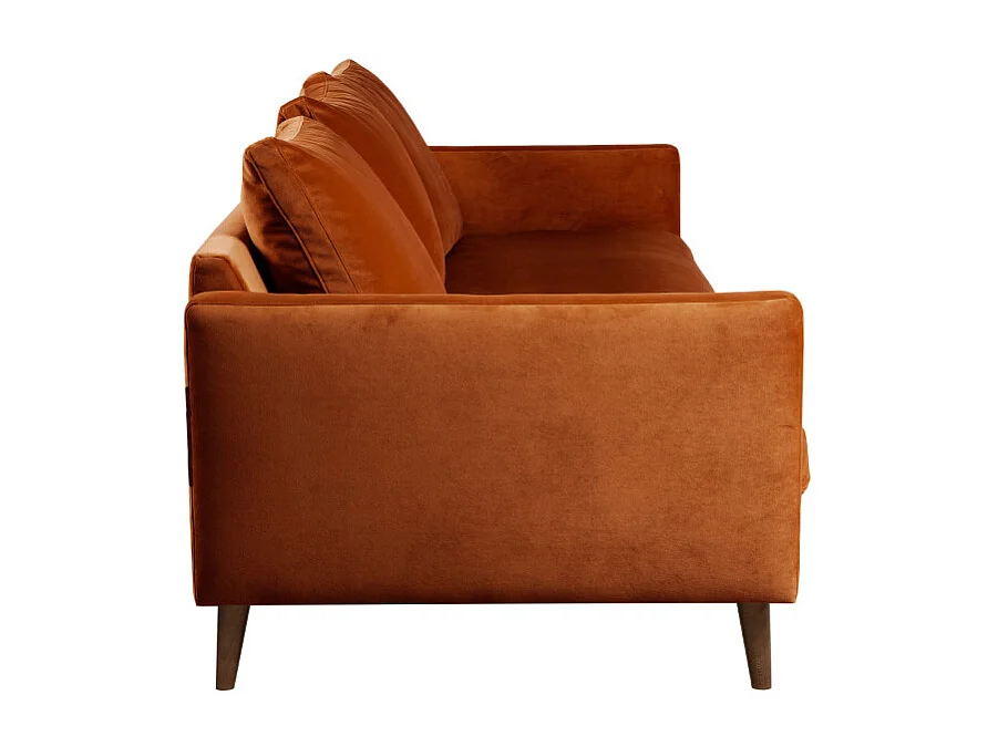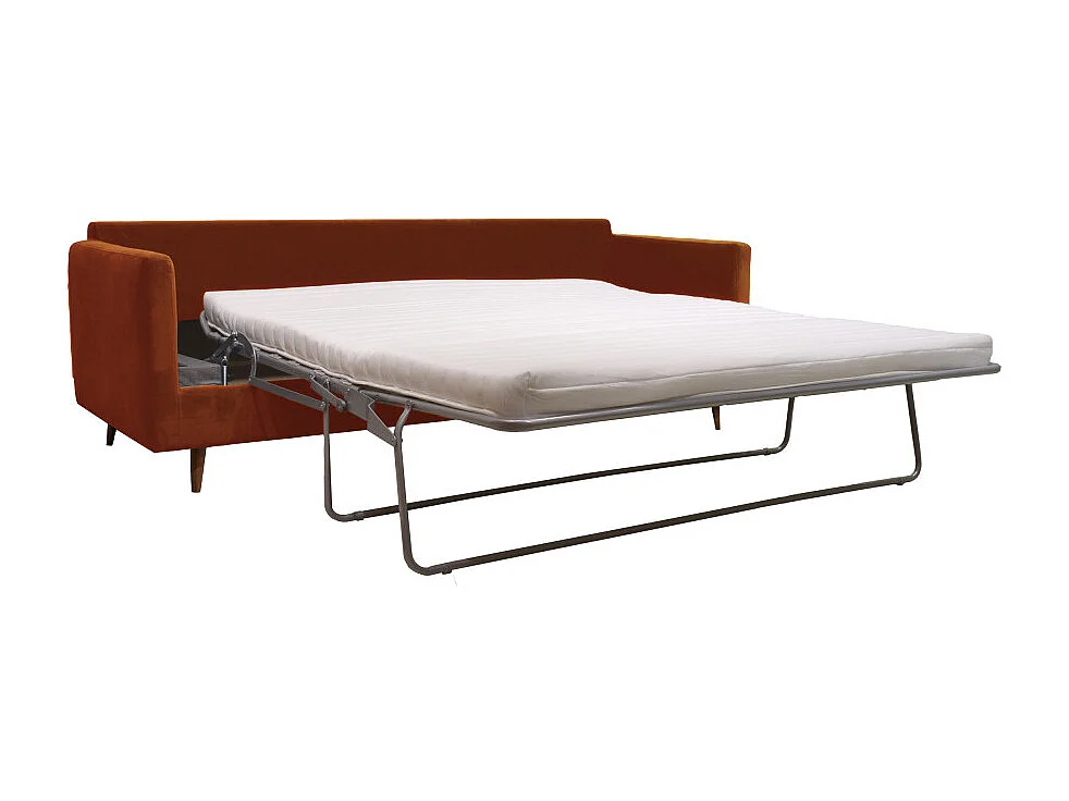 Villabon - Canapé convertible 3 places en velours pieds bois foncé - Rouille