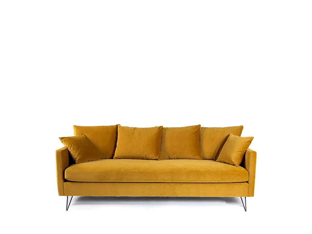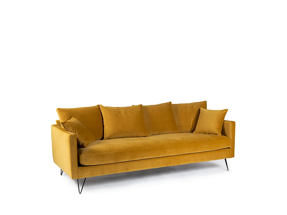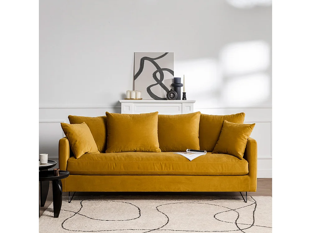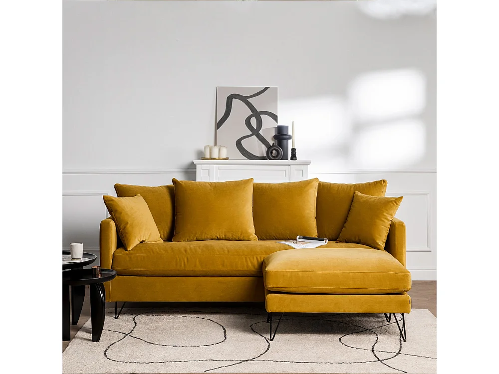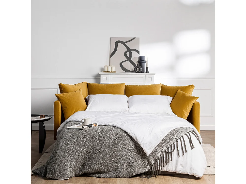 Villabon - Canapé convertible 3 places en velours pieds épingles noirs - Jaune moutarde