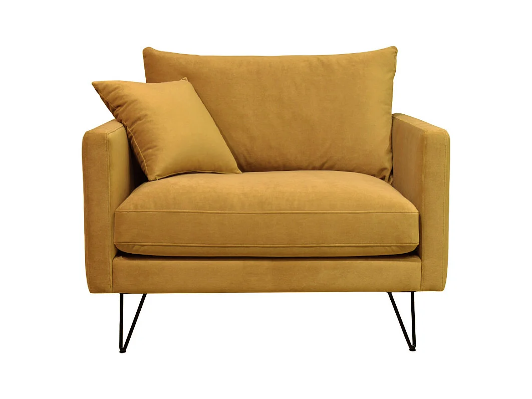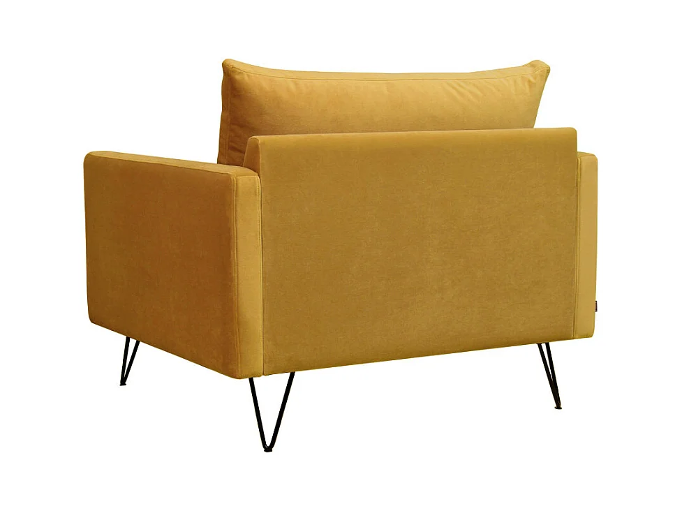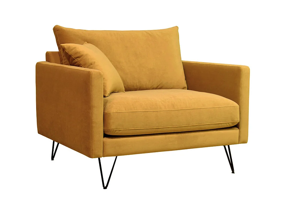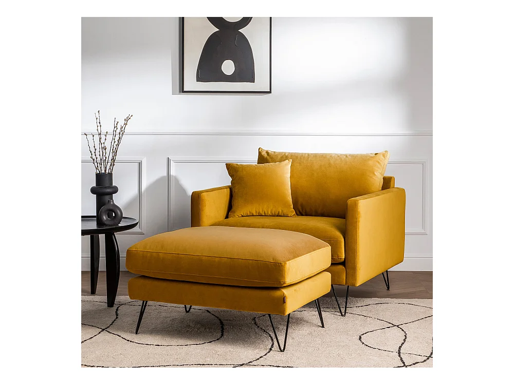 Villabon - Fauteuil XL en velours pieds épingles noirs - Jaune moutarde