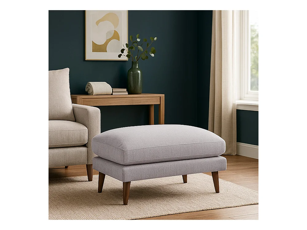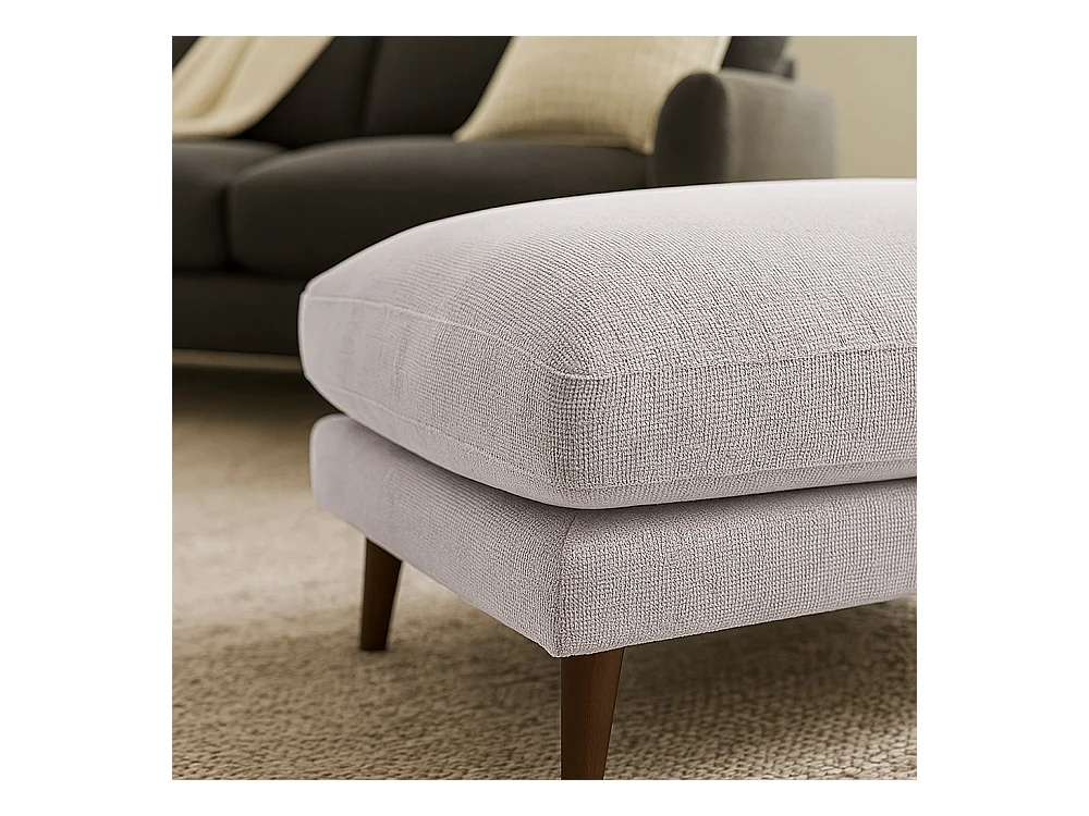 Villabon - Pouf en tissu pieds bois foncé - Naturel chiné