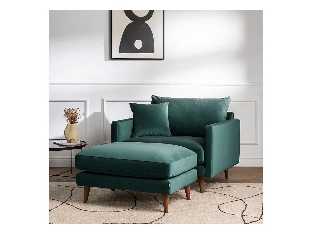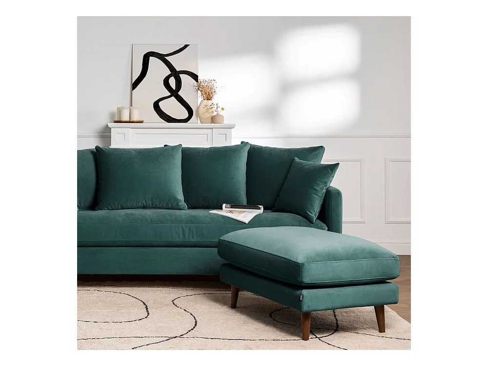 Villabon - Pouf en velours pieds bois foncé - Vert eucalyptus