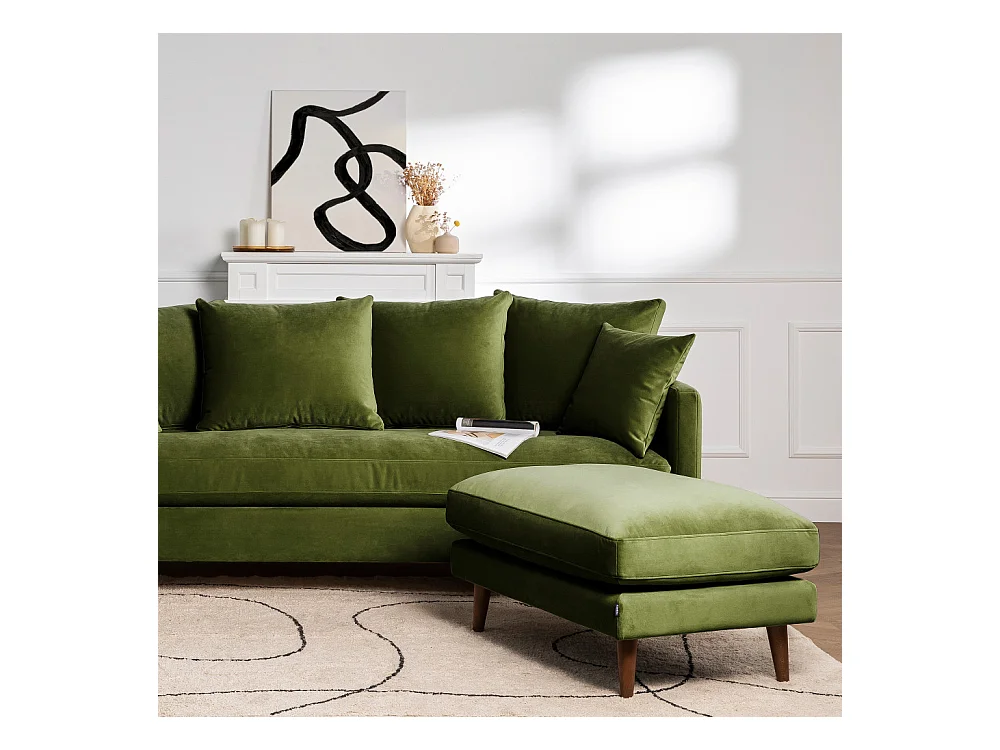 Villabon - Pouf en velours pieds bois foncé - Vert olive