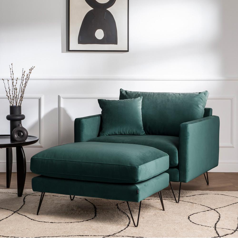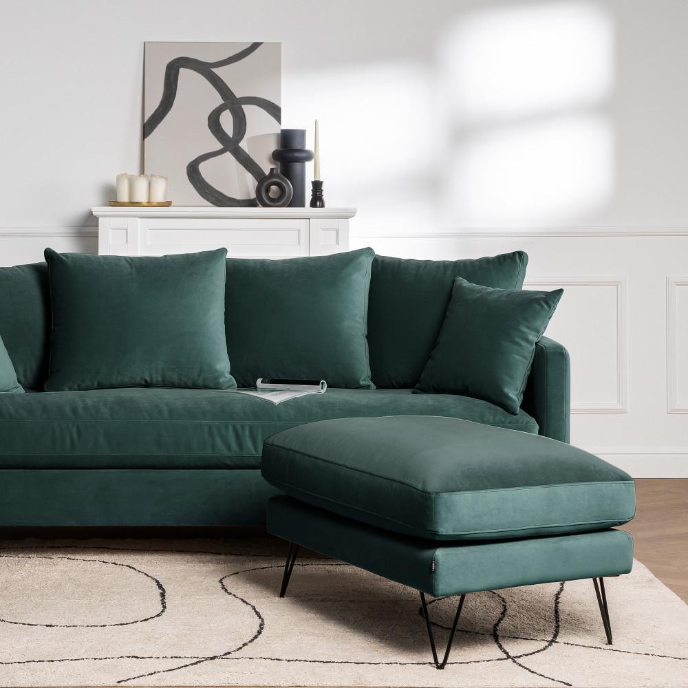 Villabon - Pouf en velours pieds épingles noirs - Vert eucalyptus
