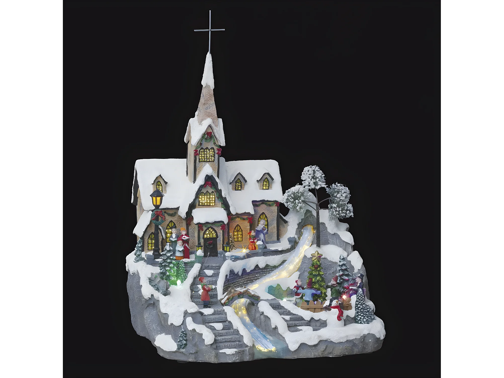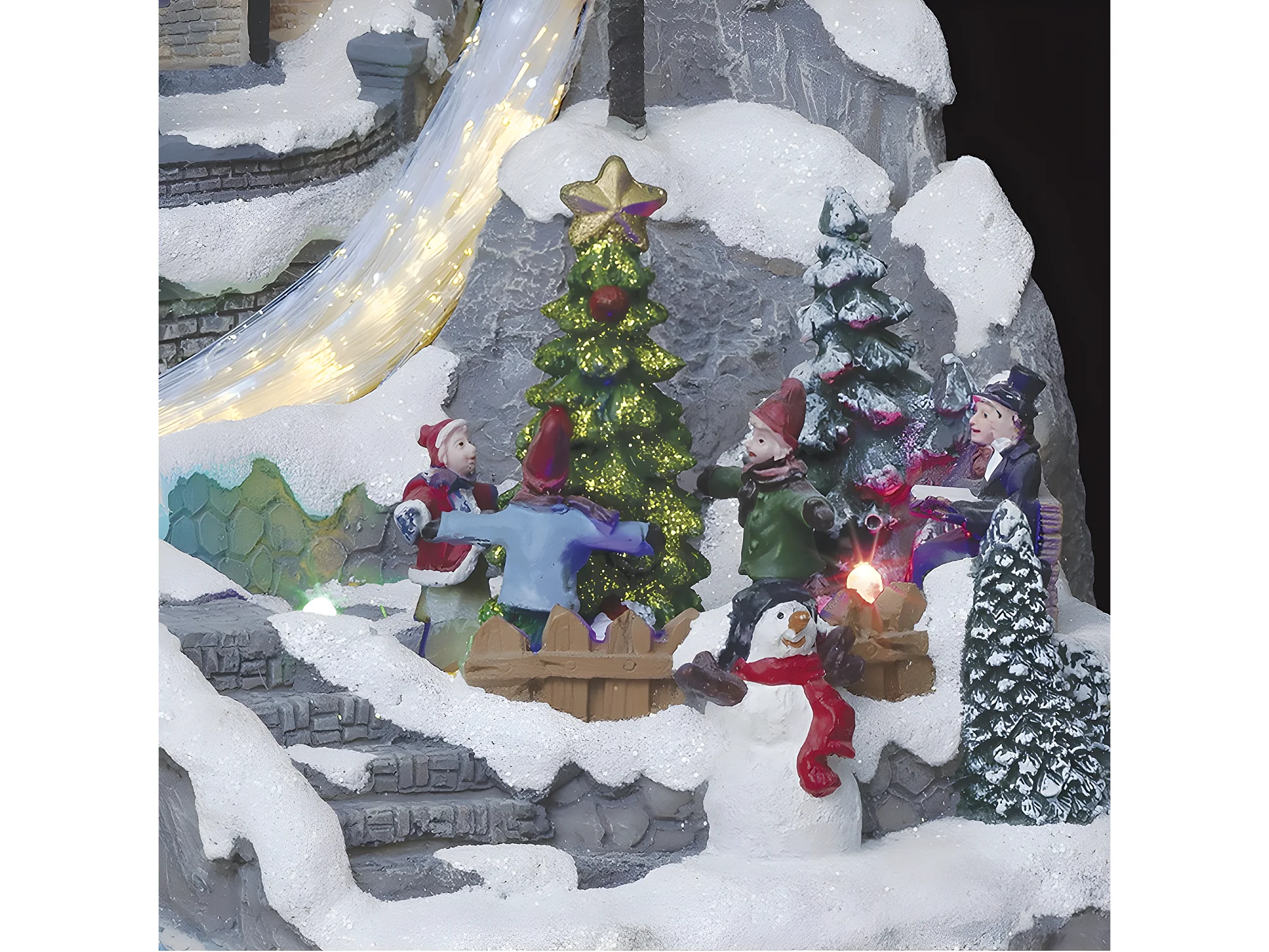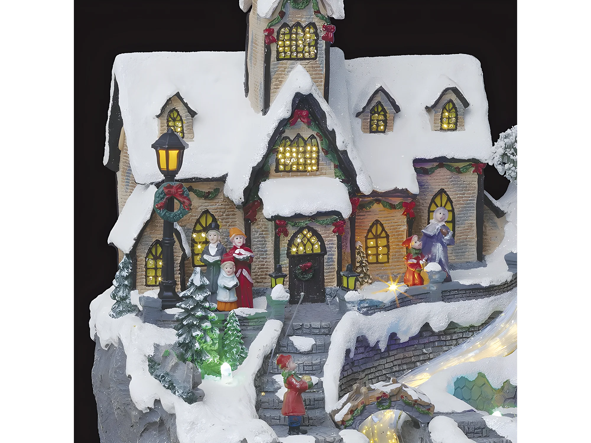Village de Noël lumineux et animé Eglise du village avec cascade en fibre optique