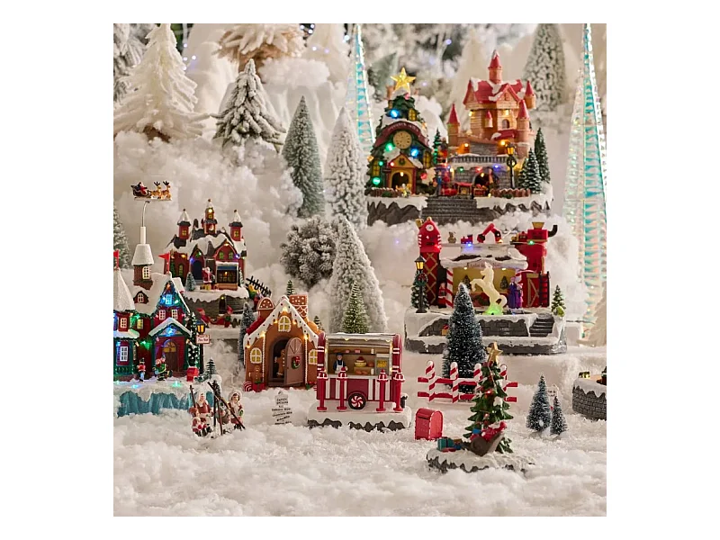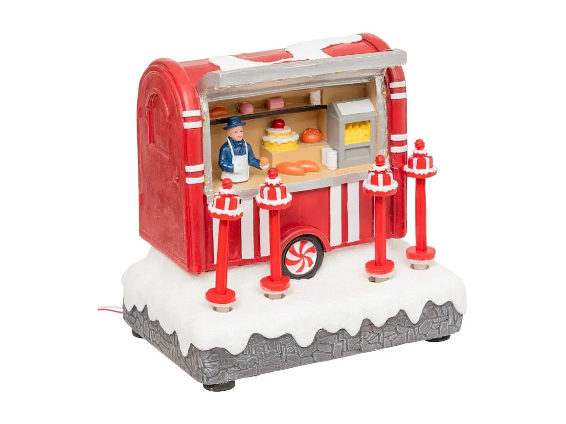 Village Noël lumineux stand gâteaux 8 LED musical animé