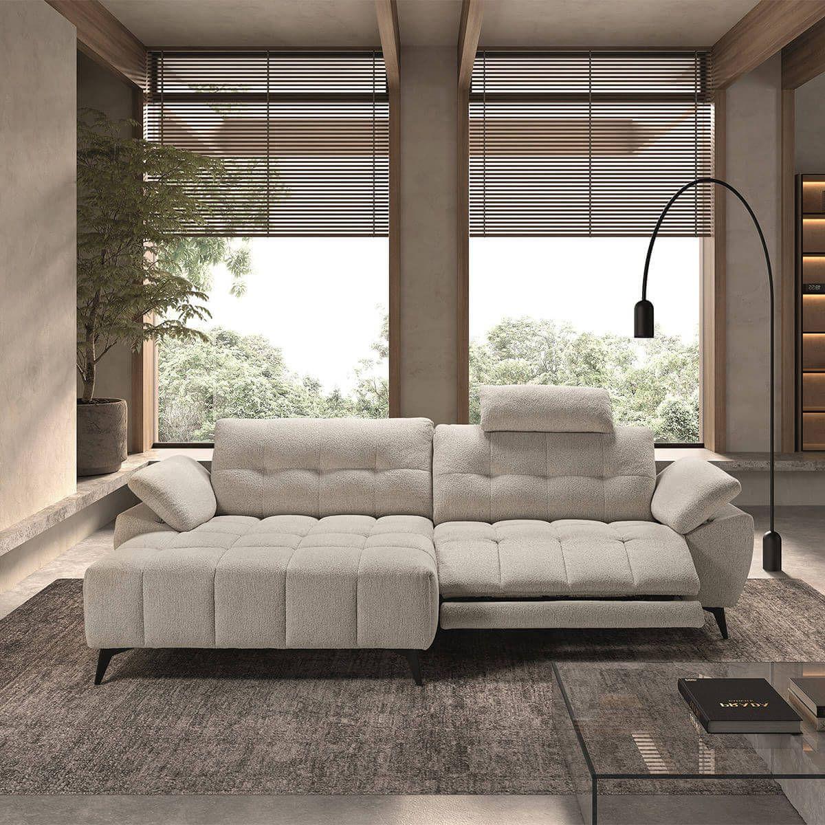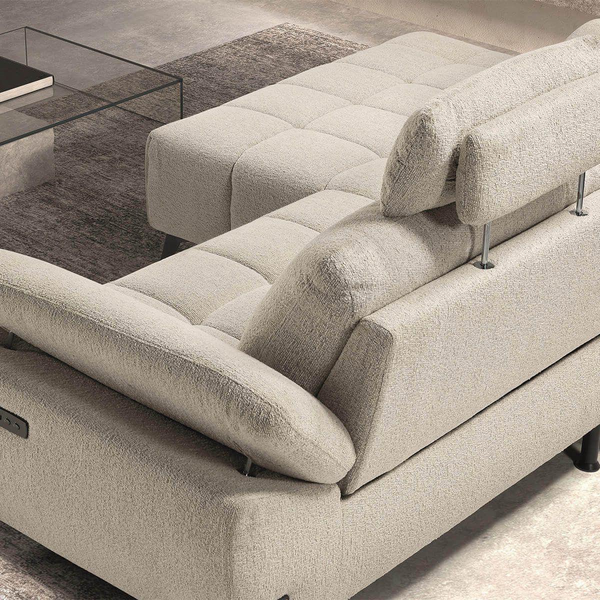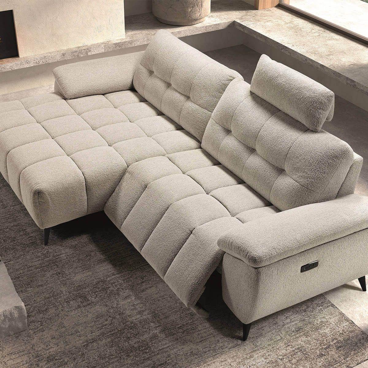 VILLALBA - Canapé Relax Méridienne gauche Têtières Réglables Tissu Bubble Beige