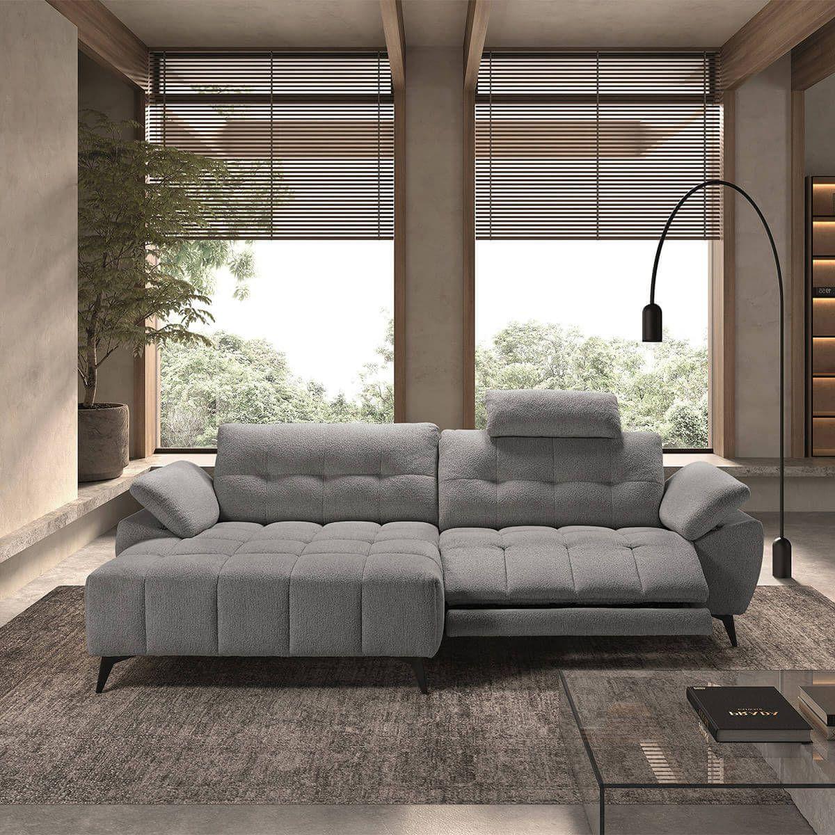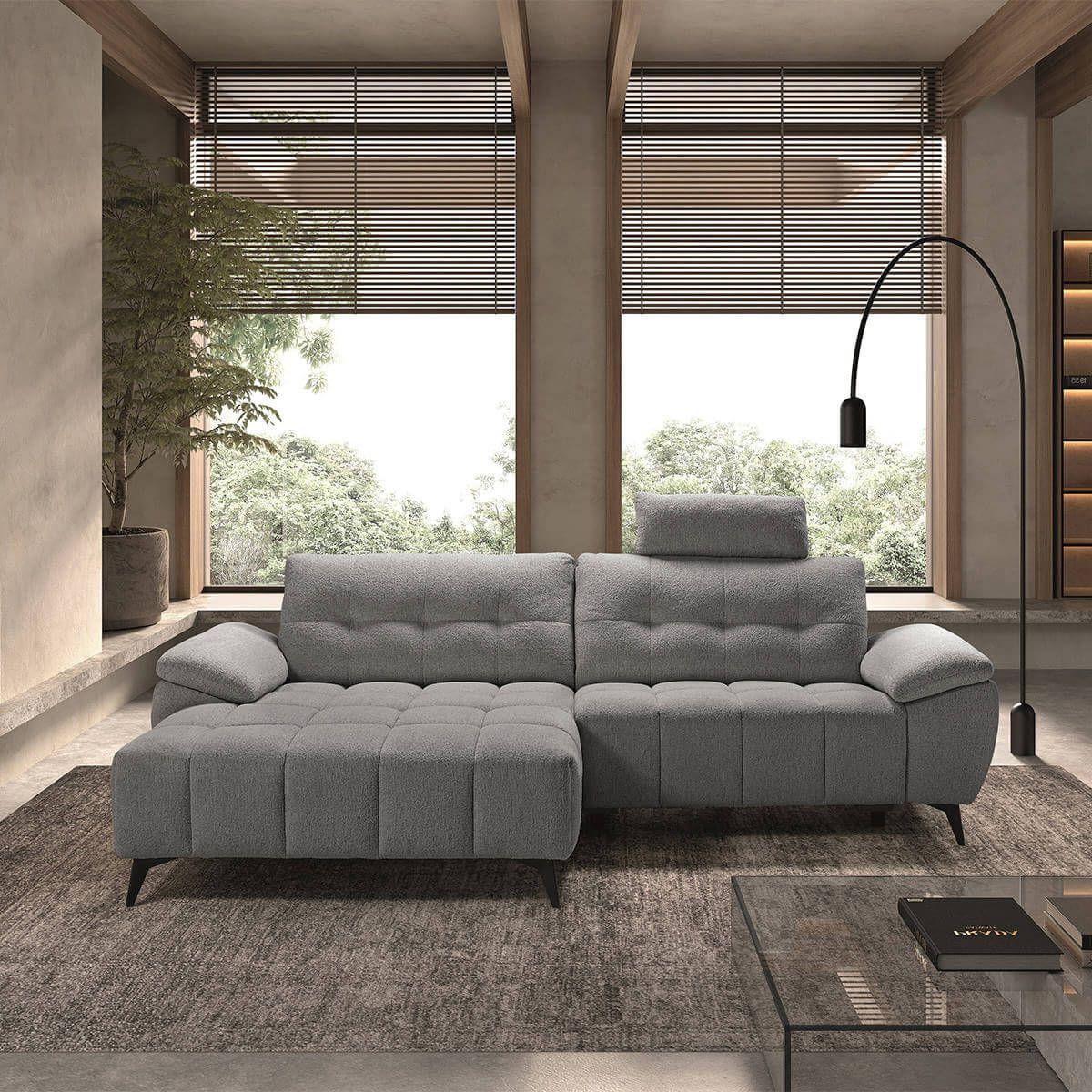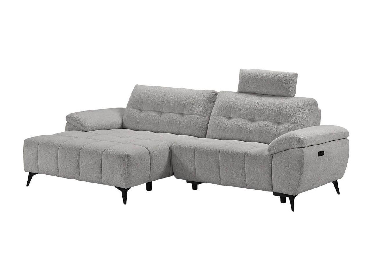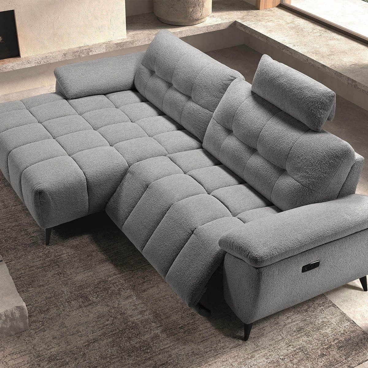 VILLALBA - Canapé Relax Méridienne gauche Têtières Réglables Tissu Bubble Gris foncé