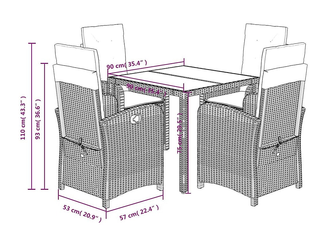 Vinkel Ensemble à manger de jardin 5 pcs coussins gris résine tressée