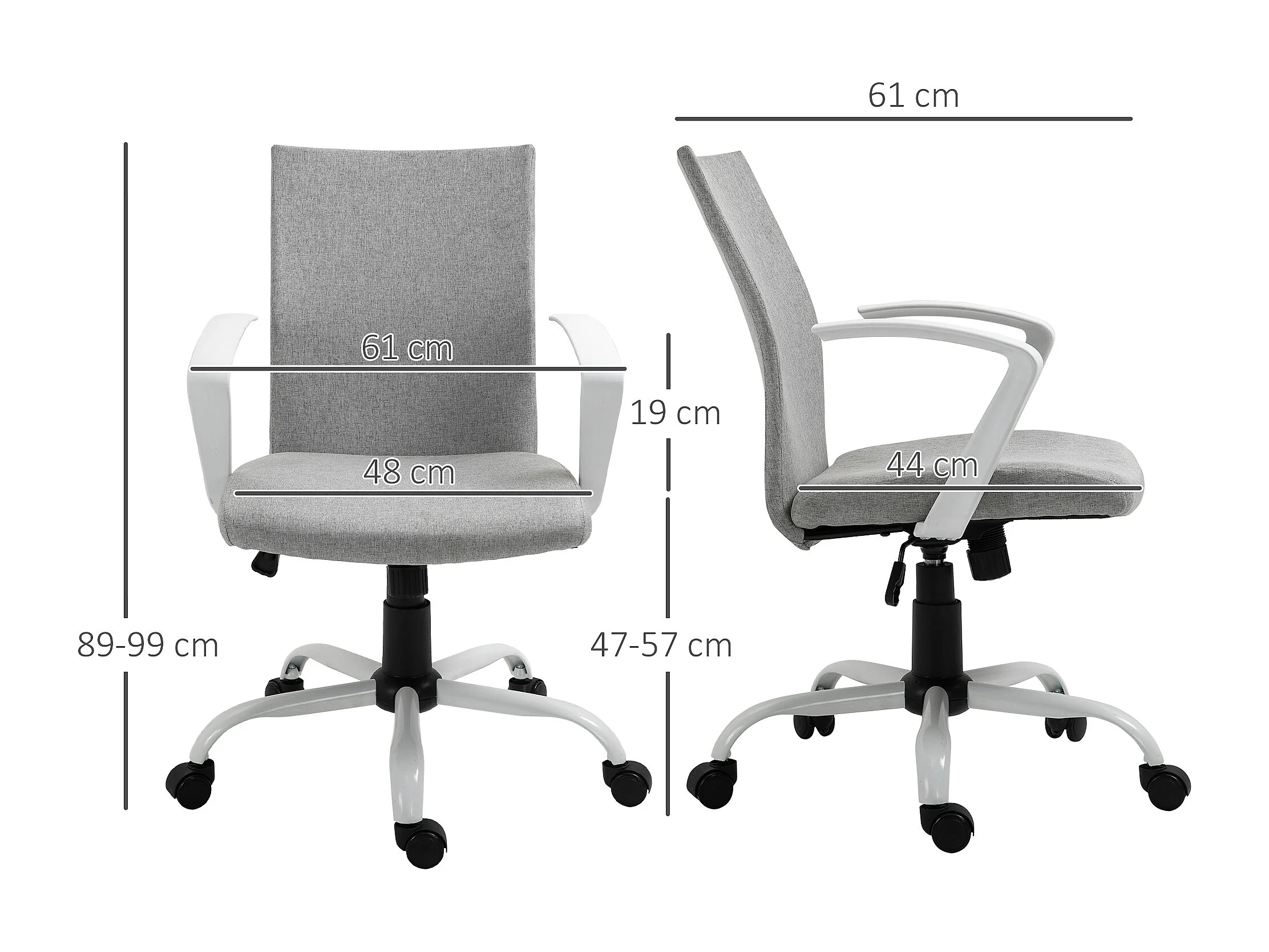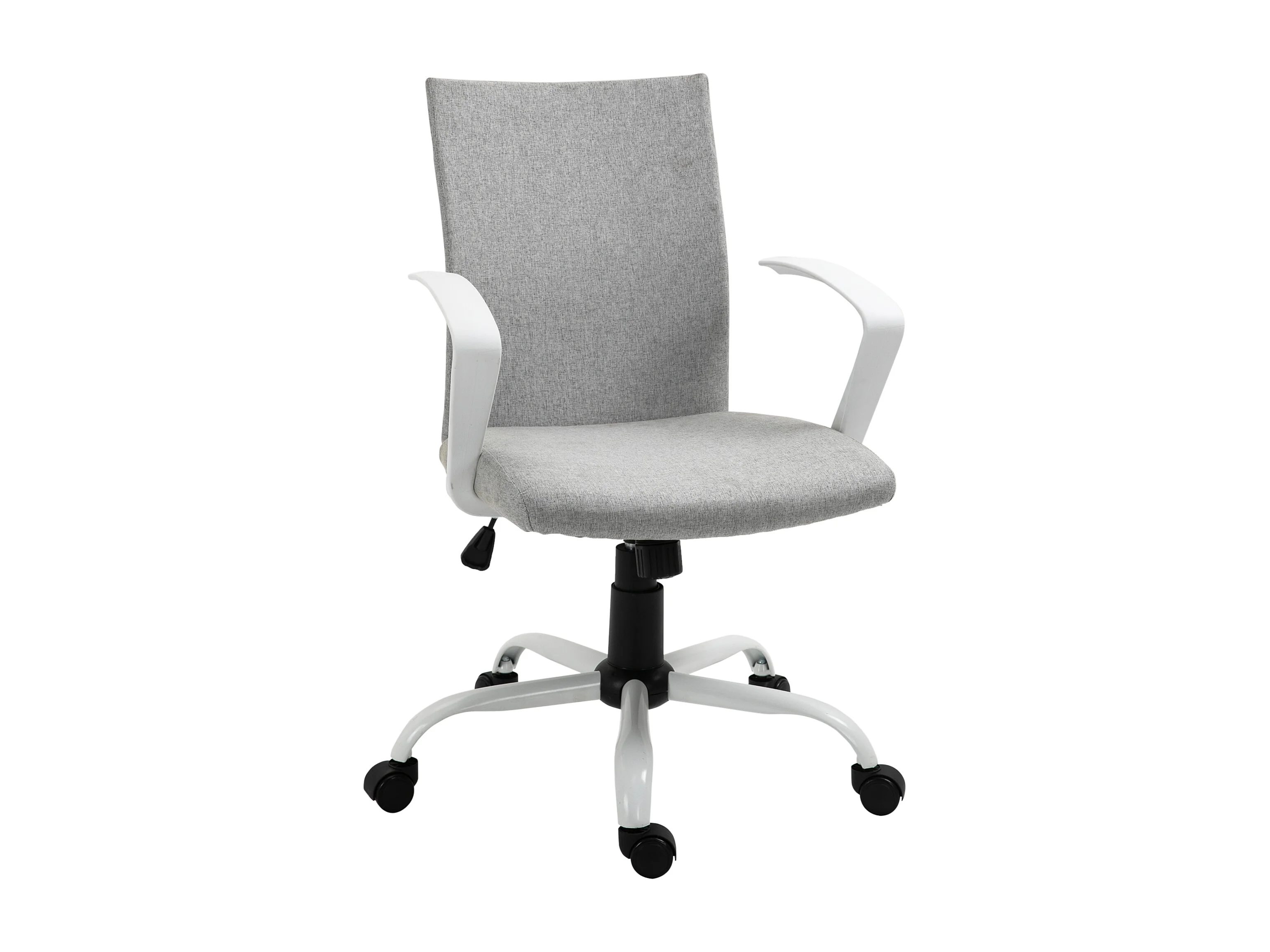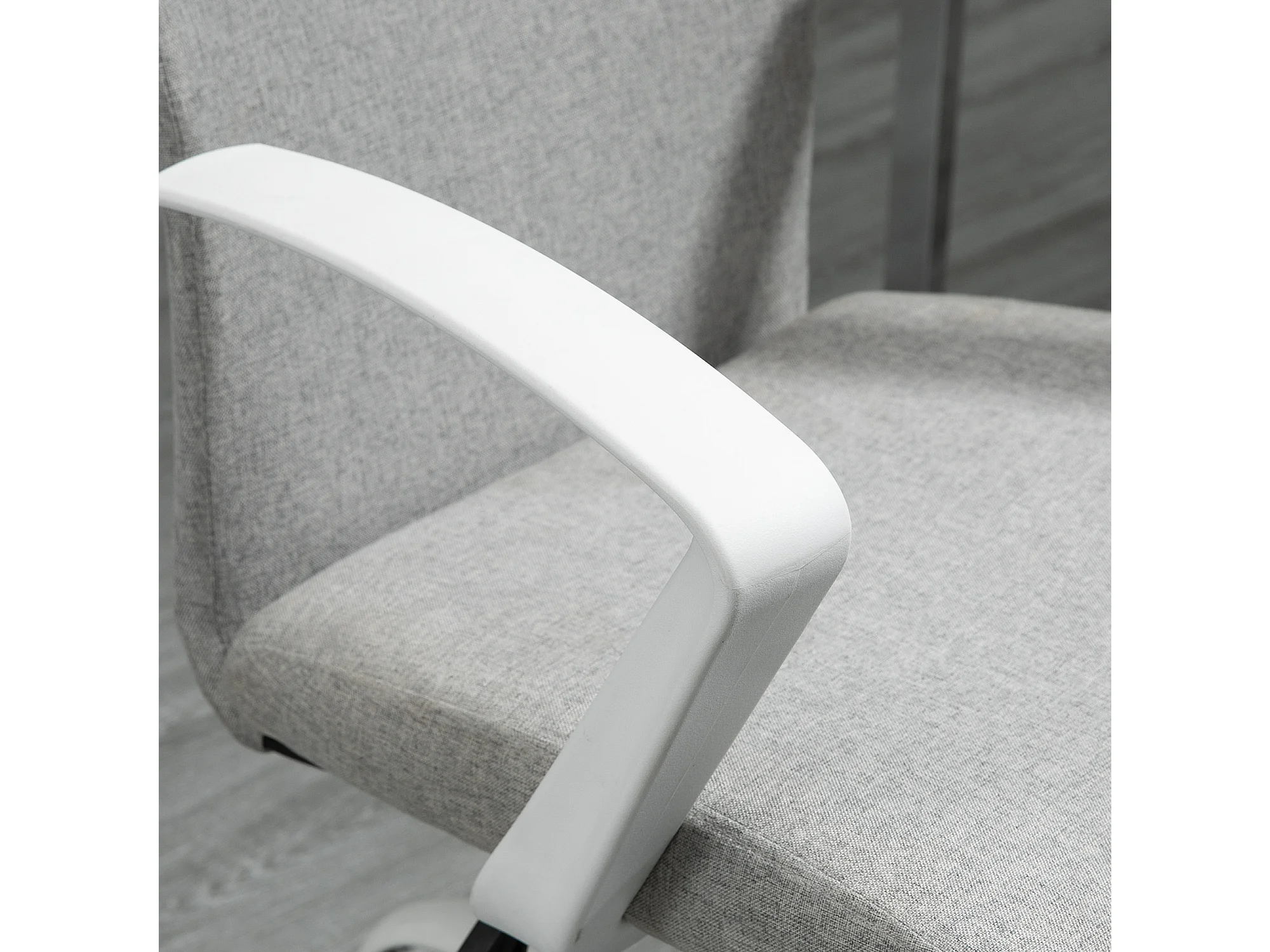 Chaise de bureau ergonomique hauteur réglable pivotante 360° piètement acier blanc lin gris clair