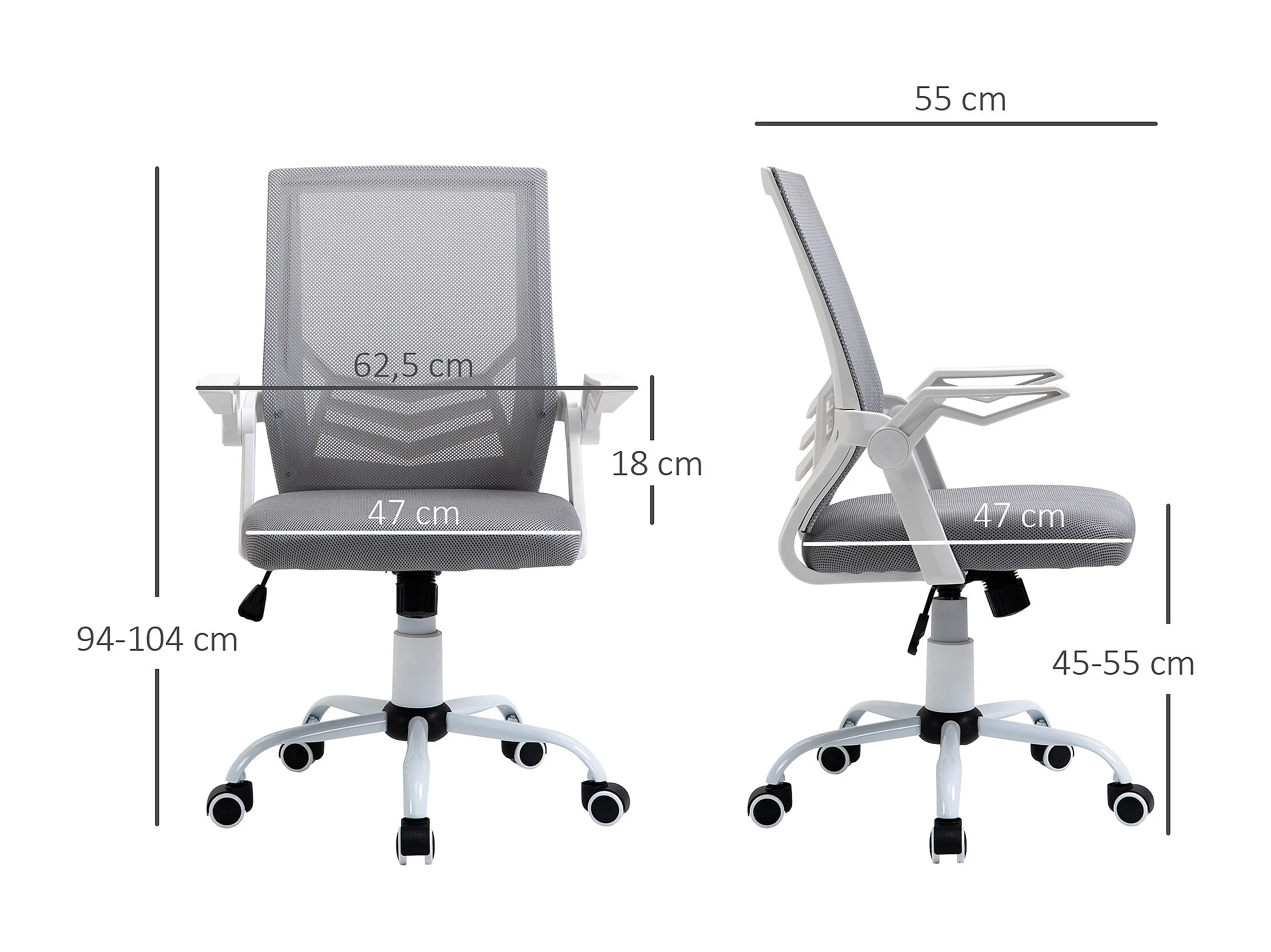 Vinsetto Chaise de bureau ergonomique support lombaires hauteur réglable pivotante 360° accoudoirs relevables polyester maille gris