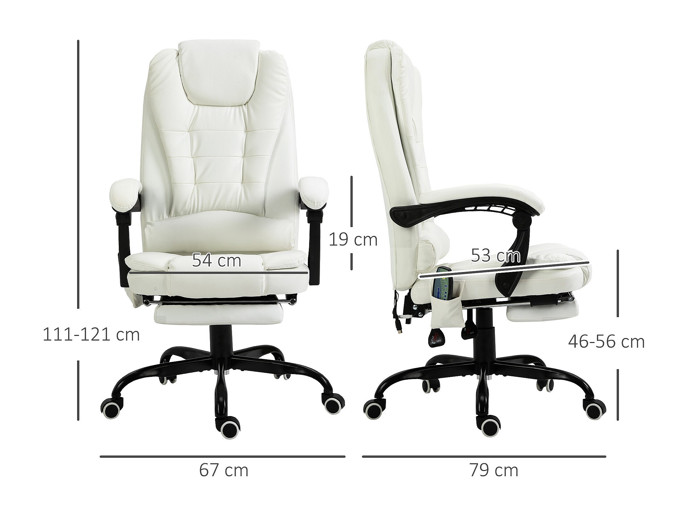 - Hauteur accoudoirs : 69-79 cm (du sol)