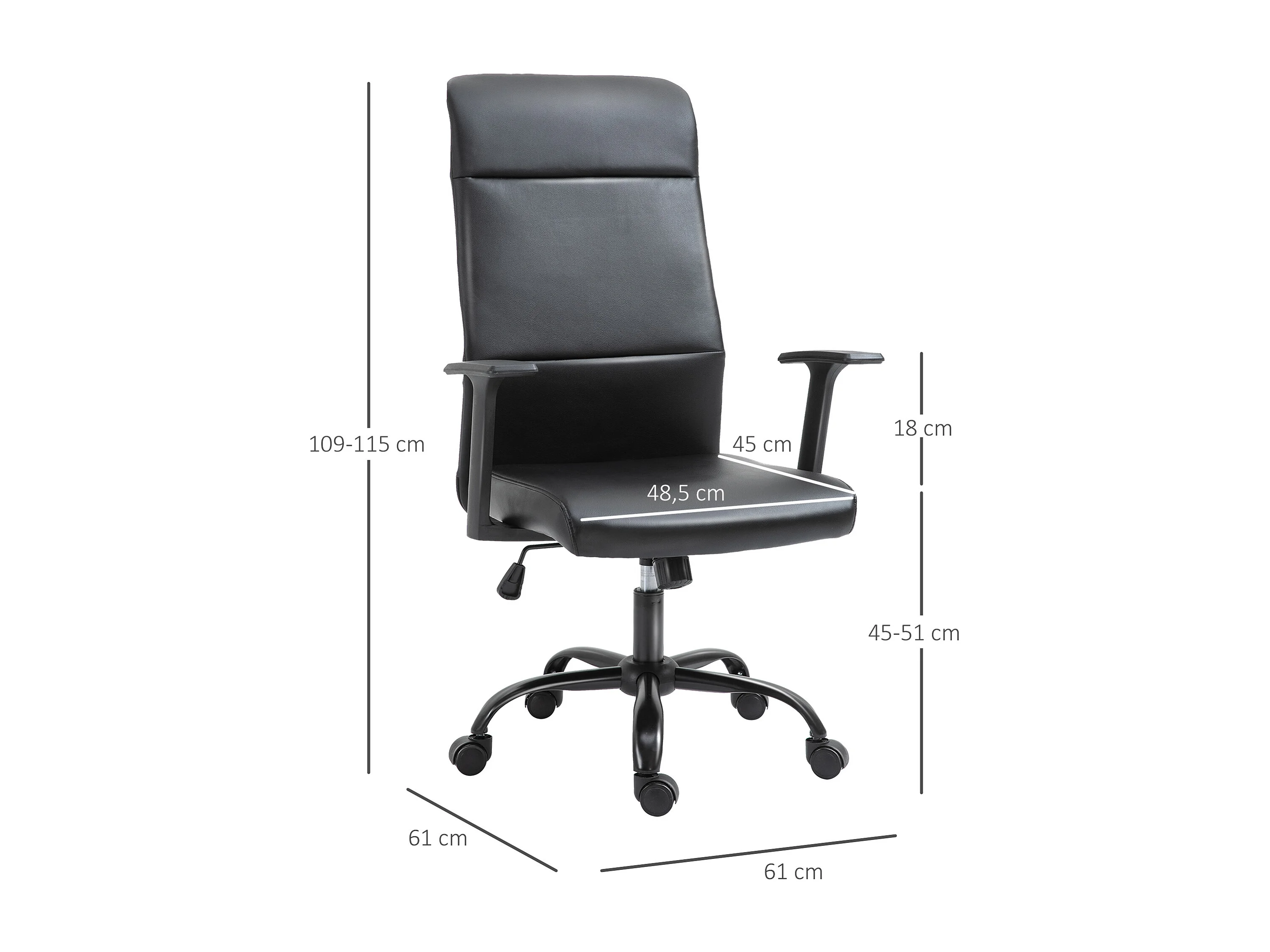 Vinsetto Fauteuil de bureau manager ergonomique pivotant 360° hauteur assise réglable revêtement synthétique PU noir
