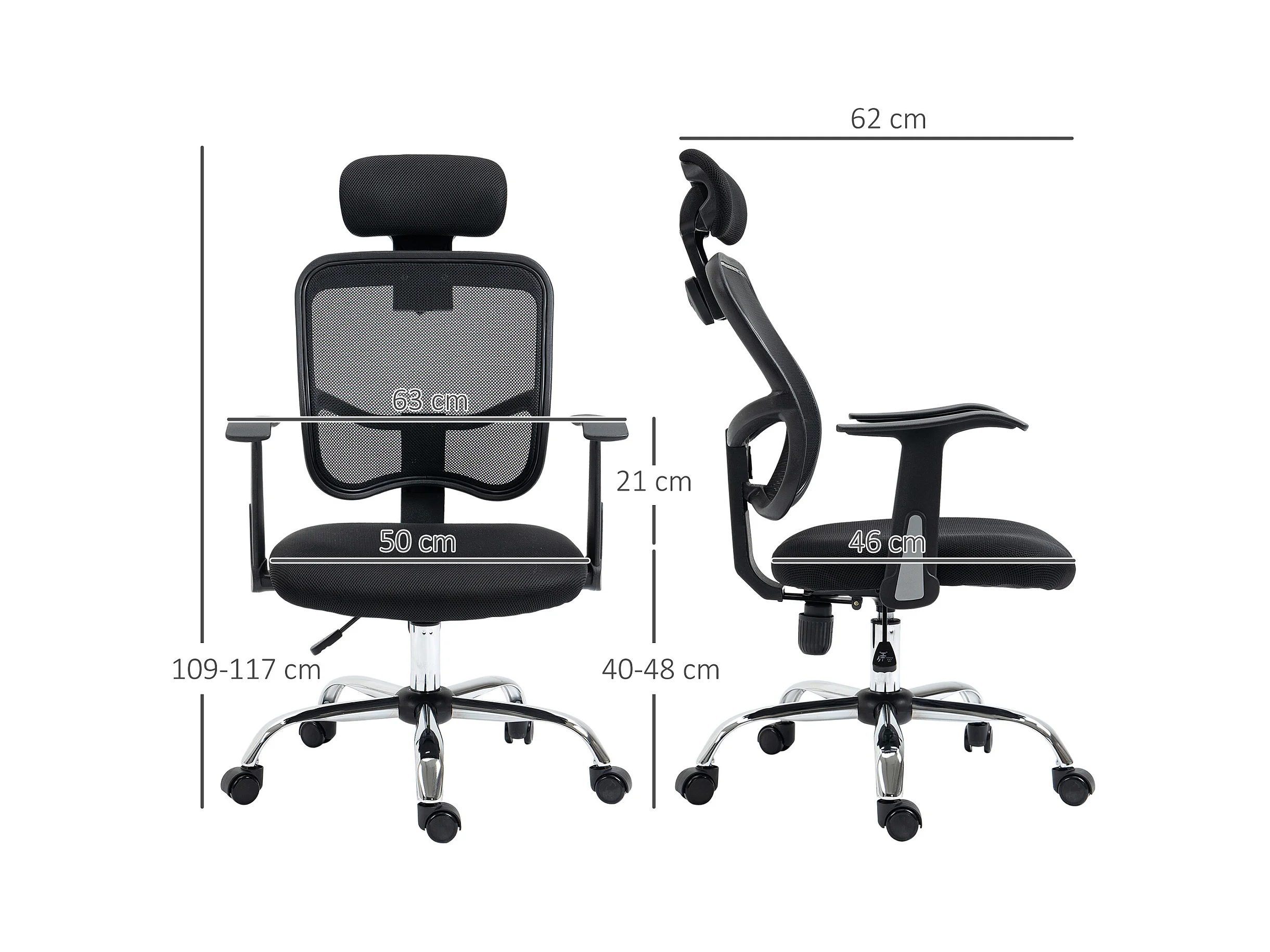 Vinsetto Fauteuil de bureau manager grand confort chaise de bureau réglable dossier inclinable piètement chromé tissu maille polyester noir