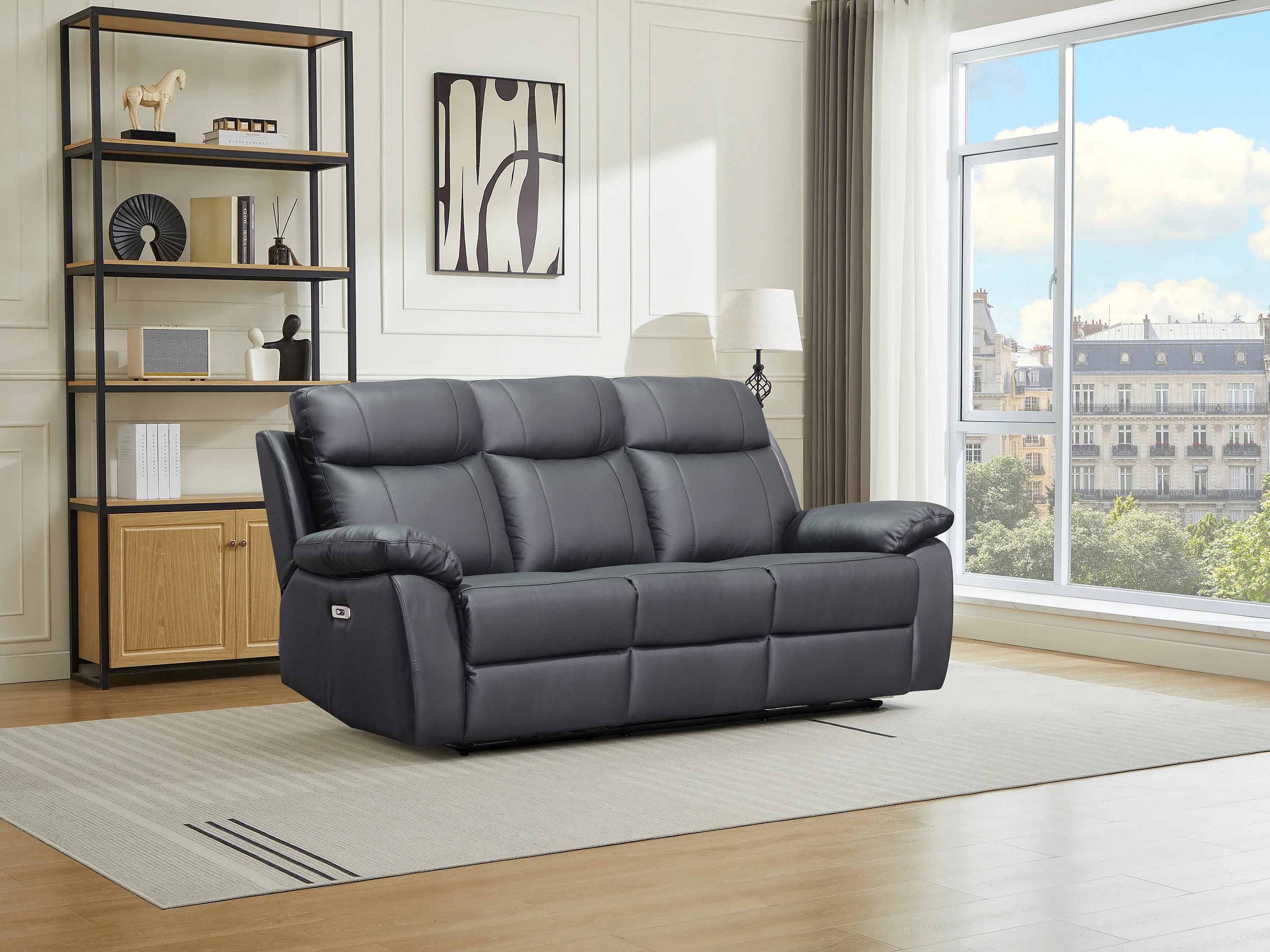 Canapé 3 places relax électrique en cuir noir VIPINO