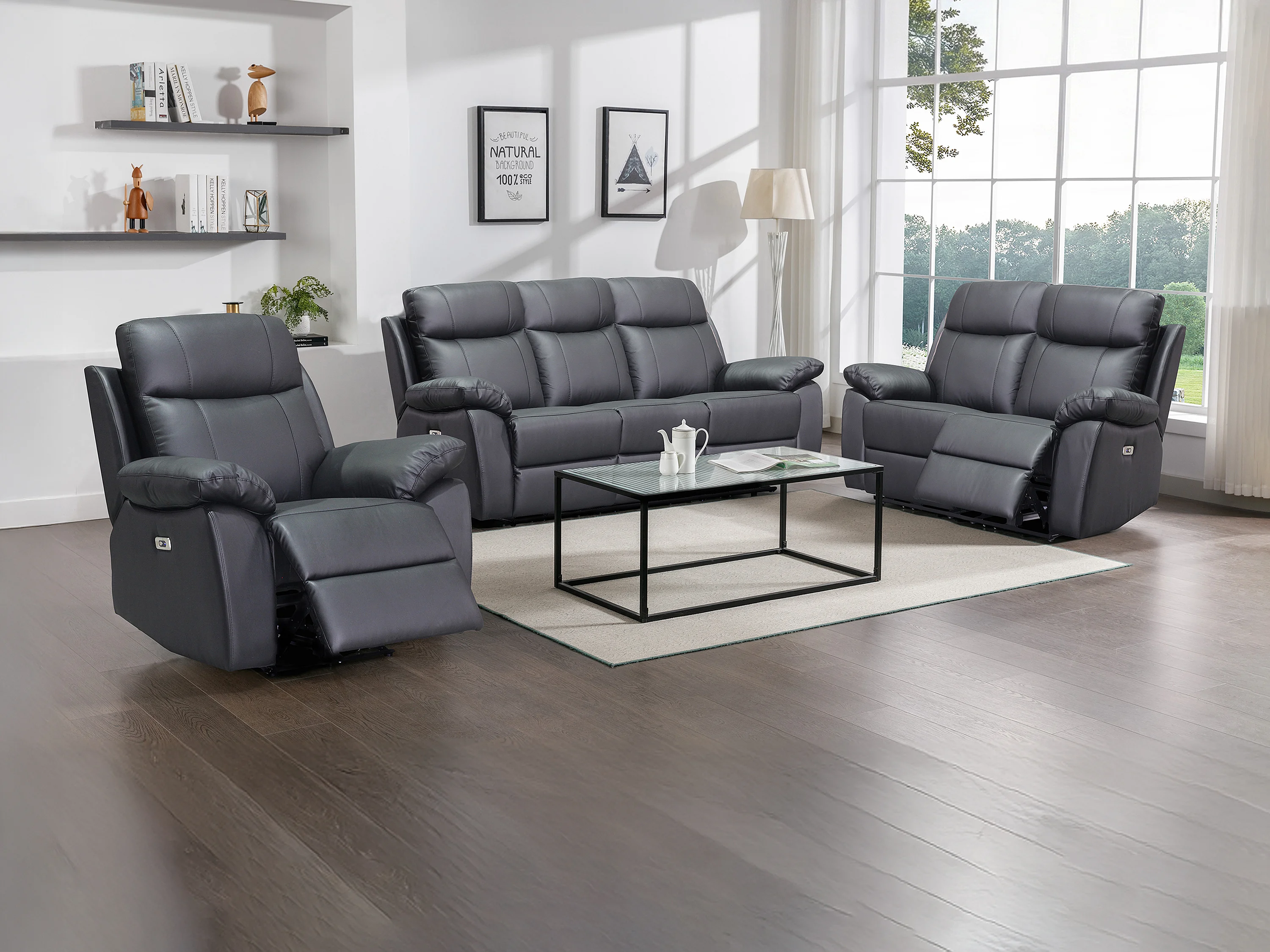 Canapés 3 places, 2 places et un fauteuil relax électrique en cuir noir VIPINO