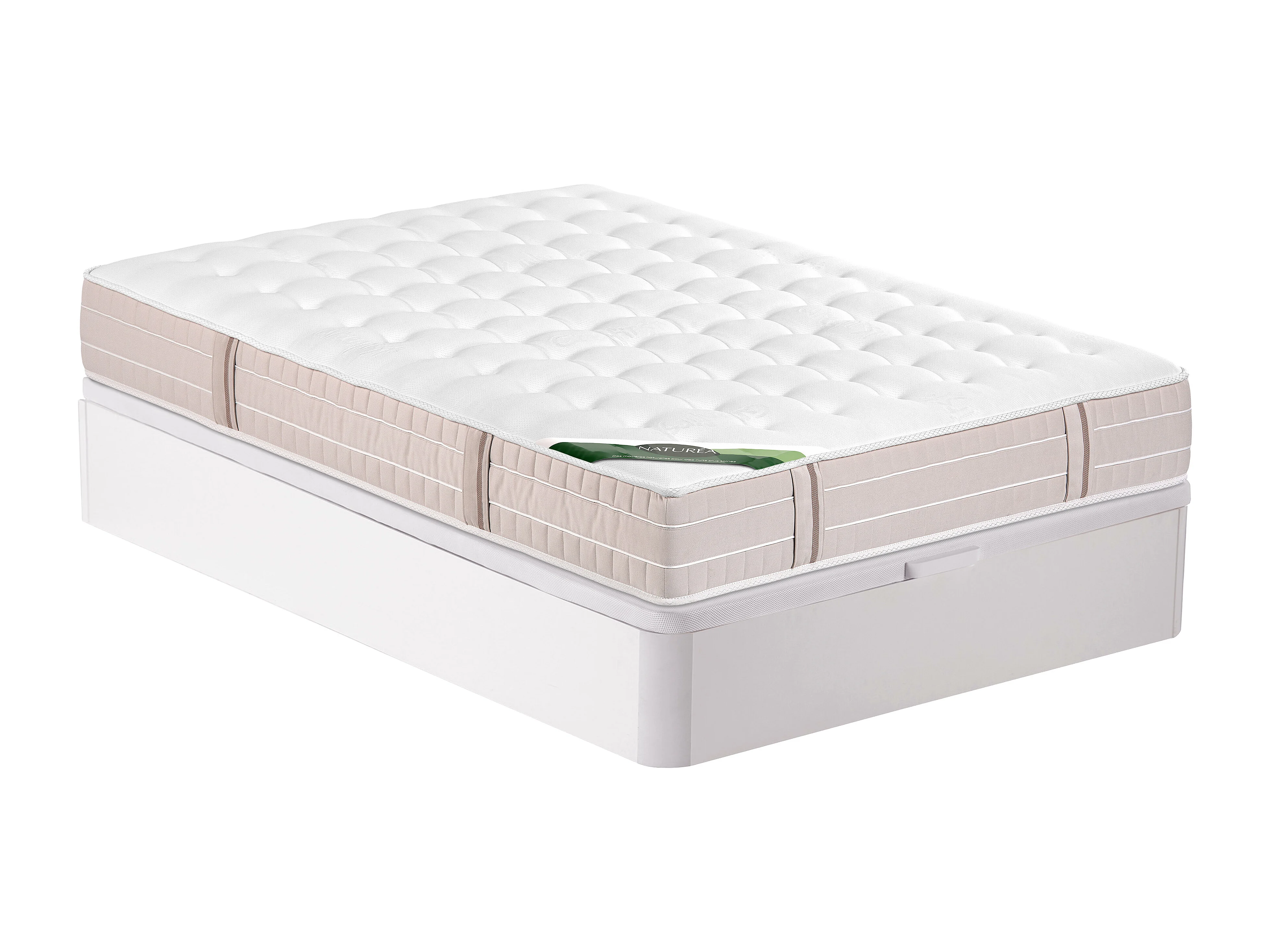Ensemble 160 x 200 cm sommier coffre blanc + matelas ressorts ensachés 5 zones accueil mémoire de forme et coutil anti-punaises de lit ép.24 cm - VIREVO de NATUREA