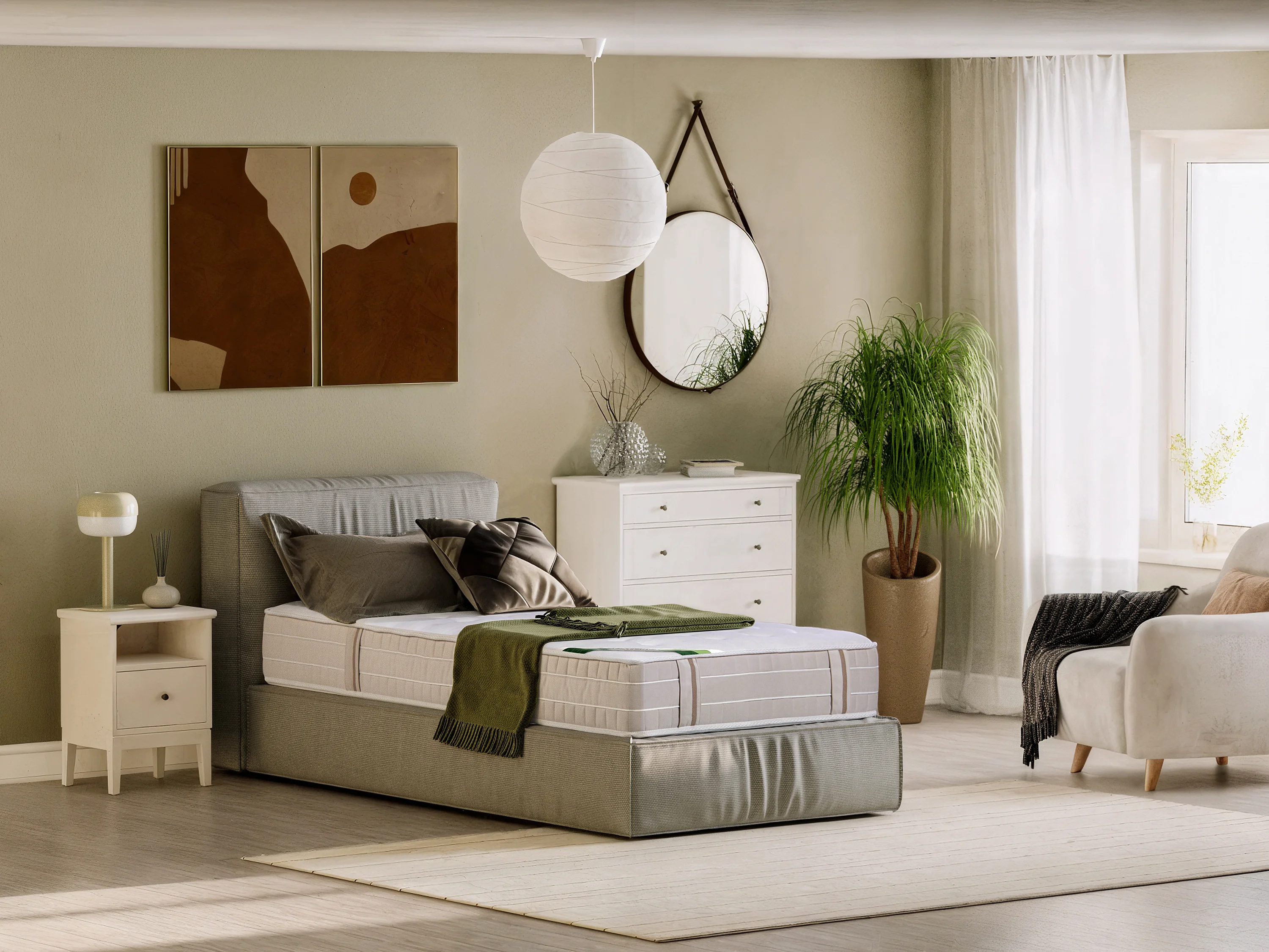 Matelas 90 x 190 cm ressorts ensachés 5 zones accueil mémoire de forme et coutil anti-punaises de lit ép.24 cm - VIREVO de NATUREA