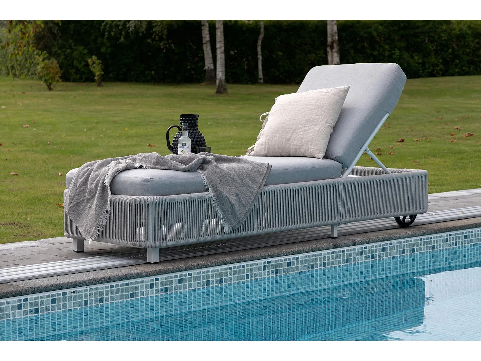 Transat à Roulettes "Virya" 205cm Blanc & Gris