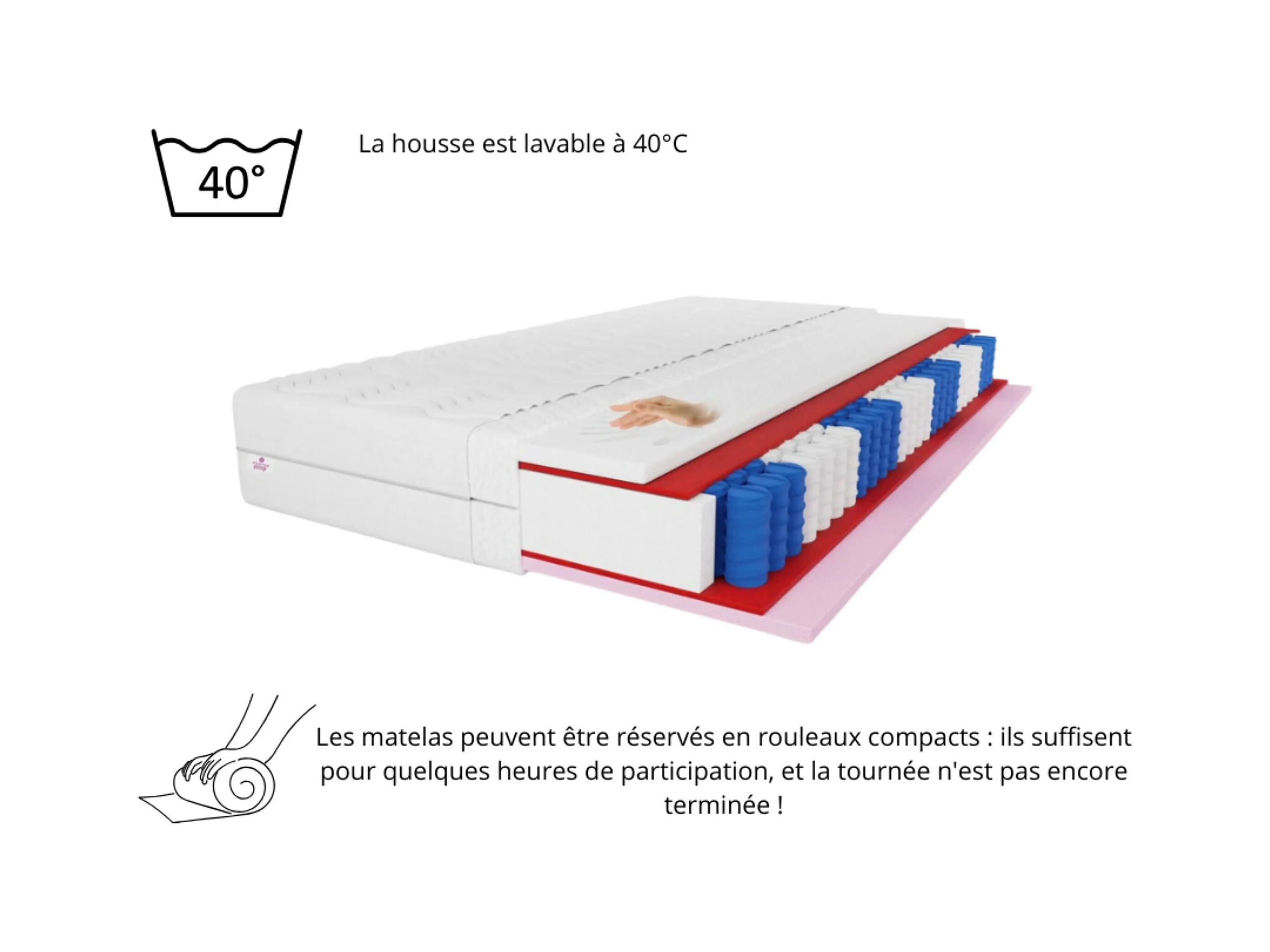 VISCO - Matelas à ressorts ensachés 7 zones Cailano, 160x200 cm, hauteur du matelas env. 19 cm, degré de fermeté H3, couleur : noir, housse incluse