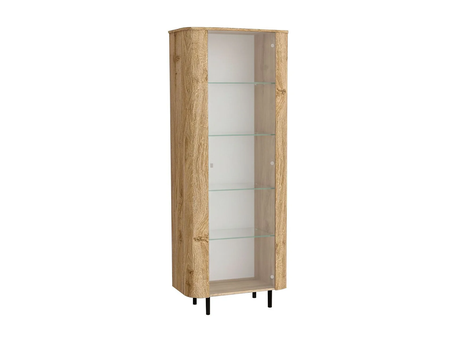 Vitrine 1 porte aspect bois finition Cadiz design coins arrondis pieds métal noir - VIVARINI