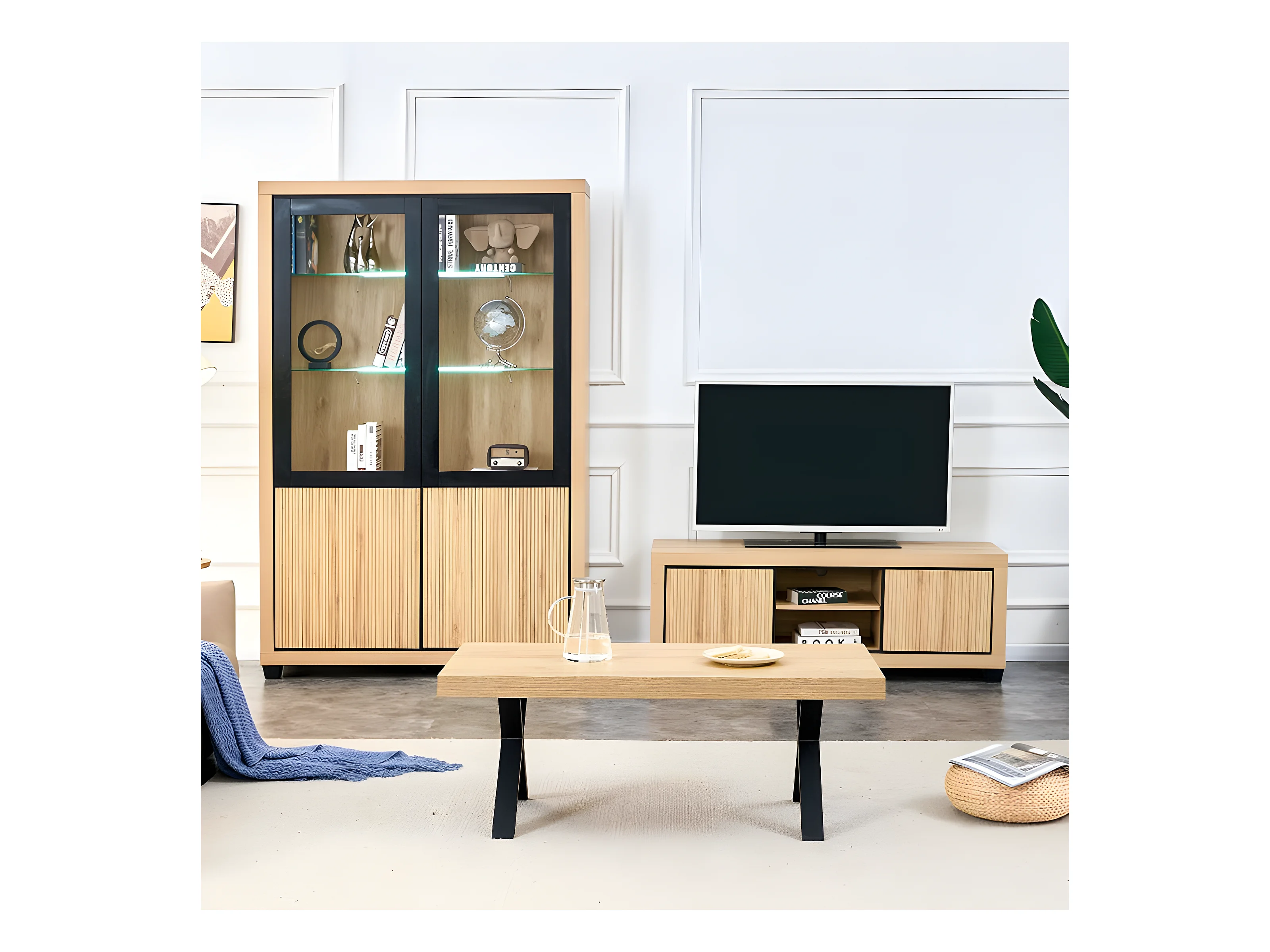 Vitrine 2 + 2 portes chêne wellington et noir Nice