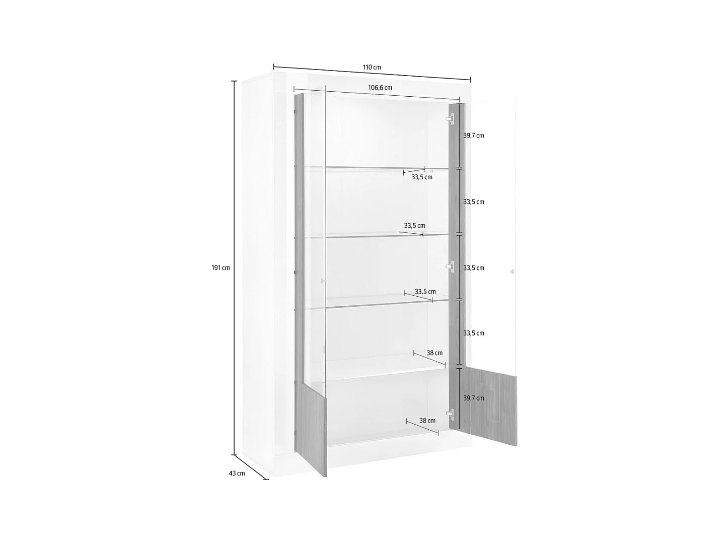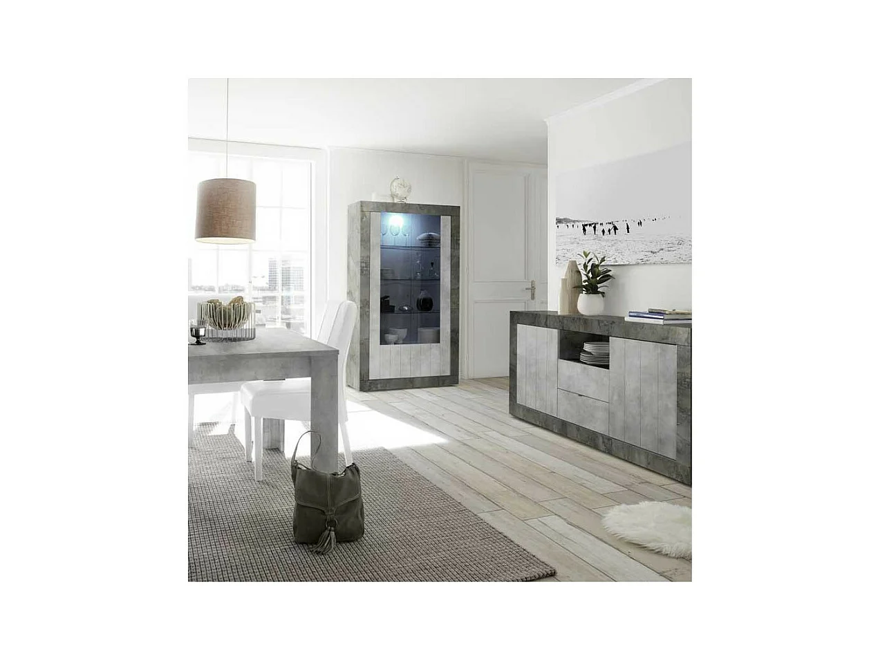 Vitrine 2 portes Béton ciré foncé/clair à LEDs - LUBIO n°2