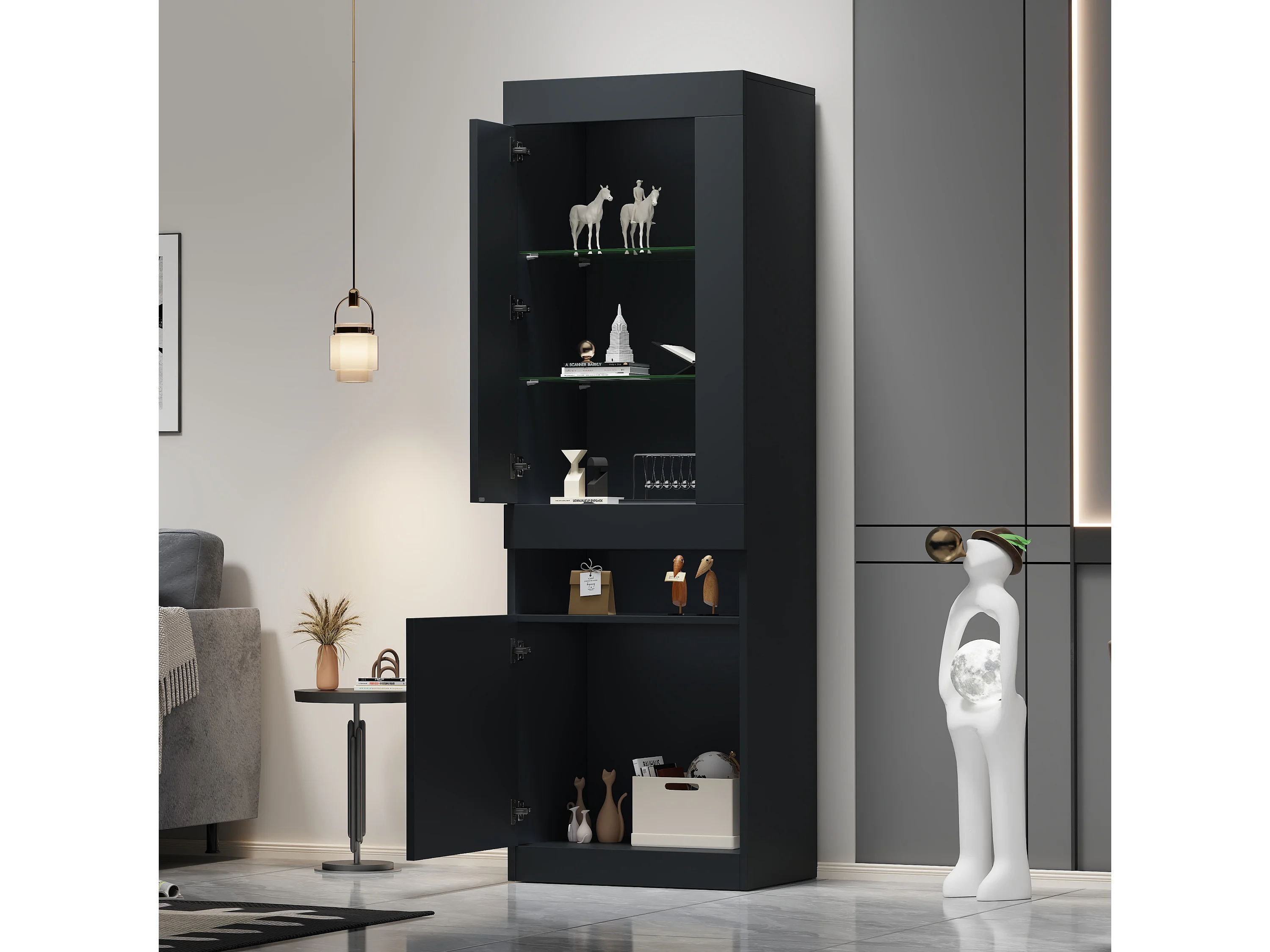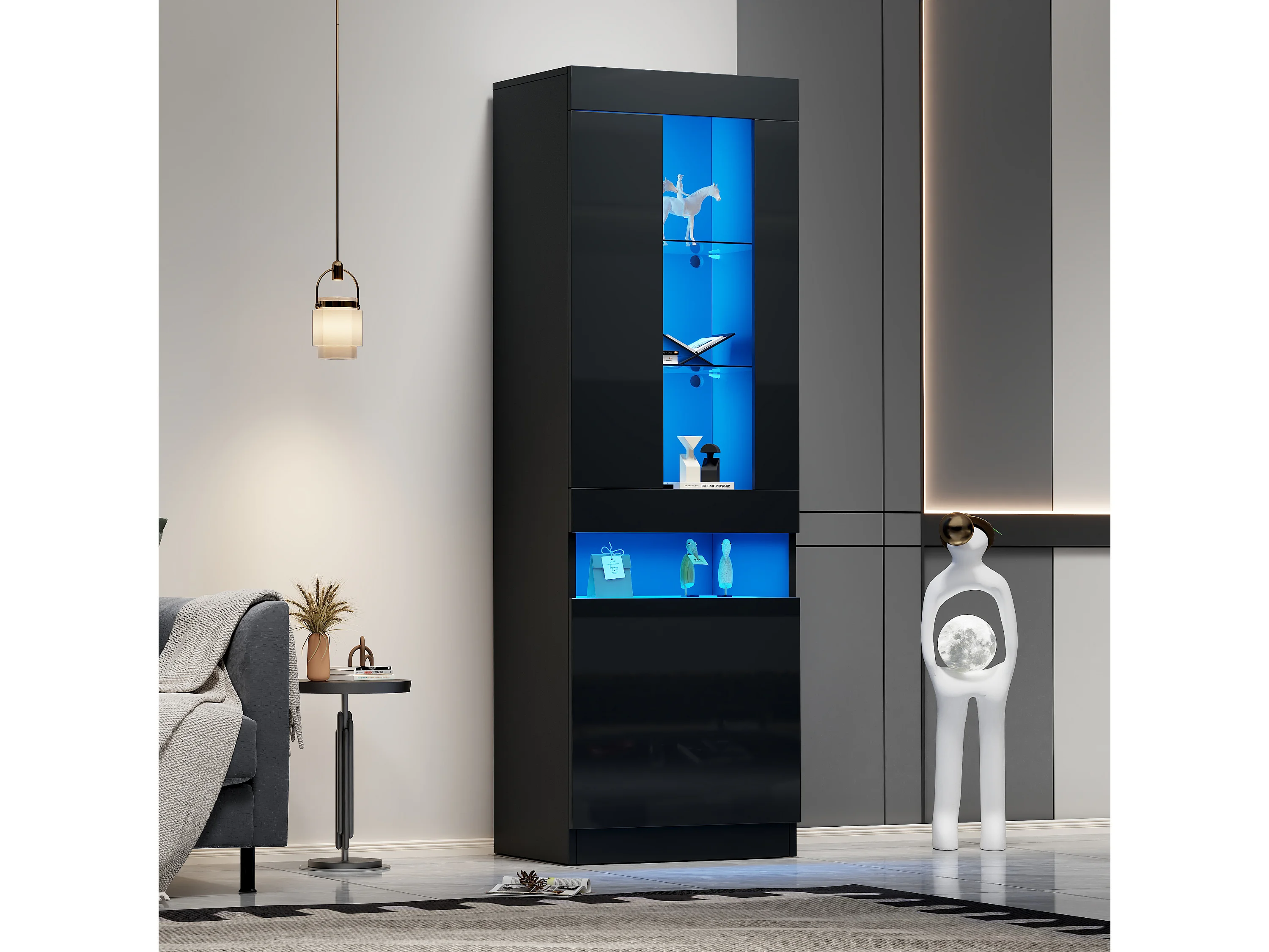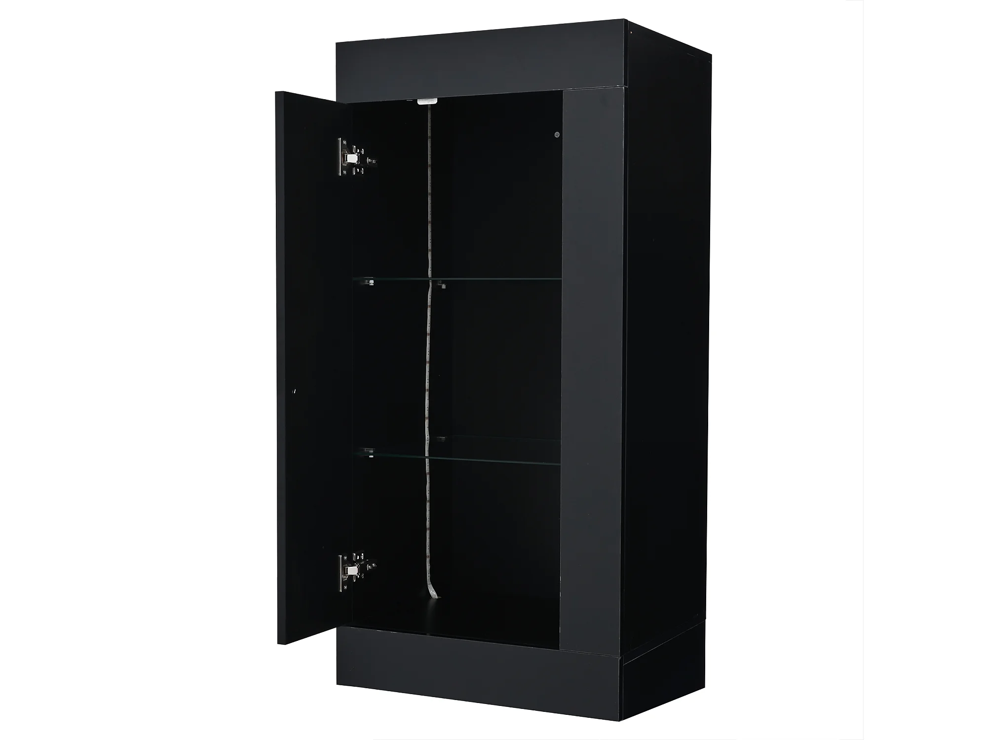 Vitrine 50x40x180 cm - avec éclairage LED - 2 portes - Étagères en verre - Finition brillante - Panneaux de particules - Noir