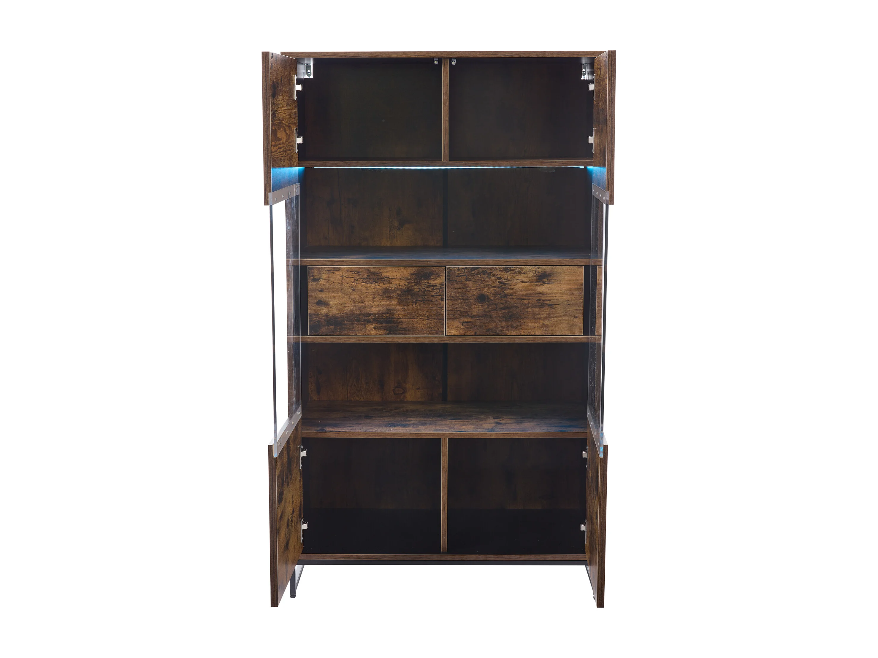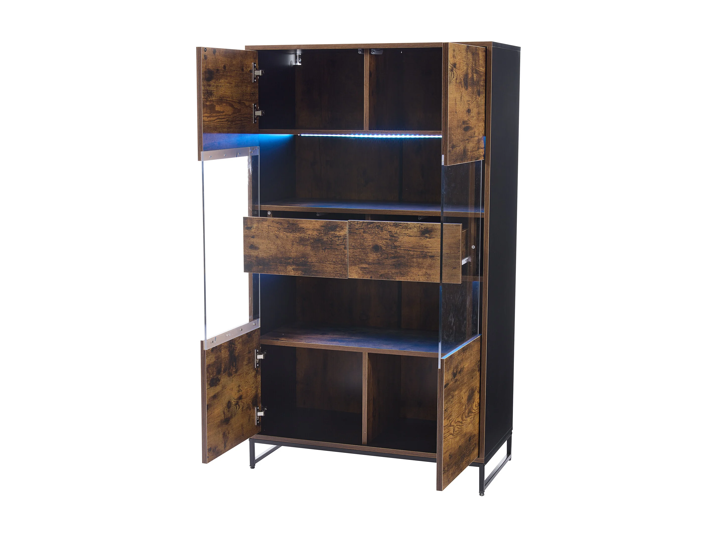Vitrine 80x40x138cm avec 2 portes en acrylique et 2 tiroirs, LED inclus, corps en marron et noir