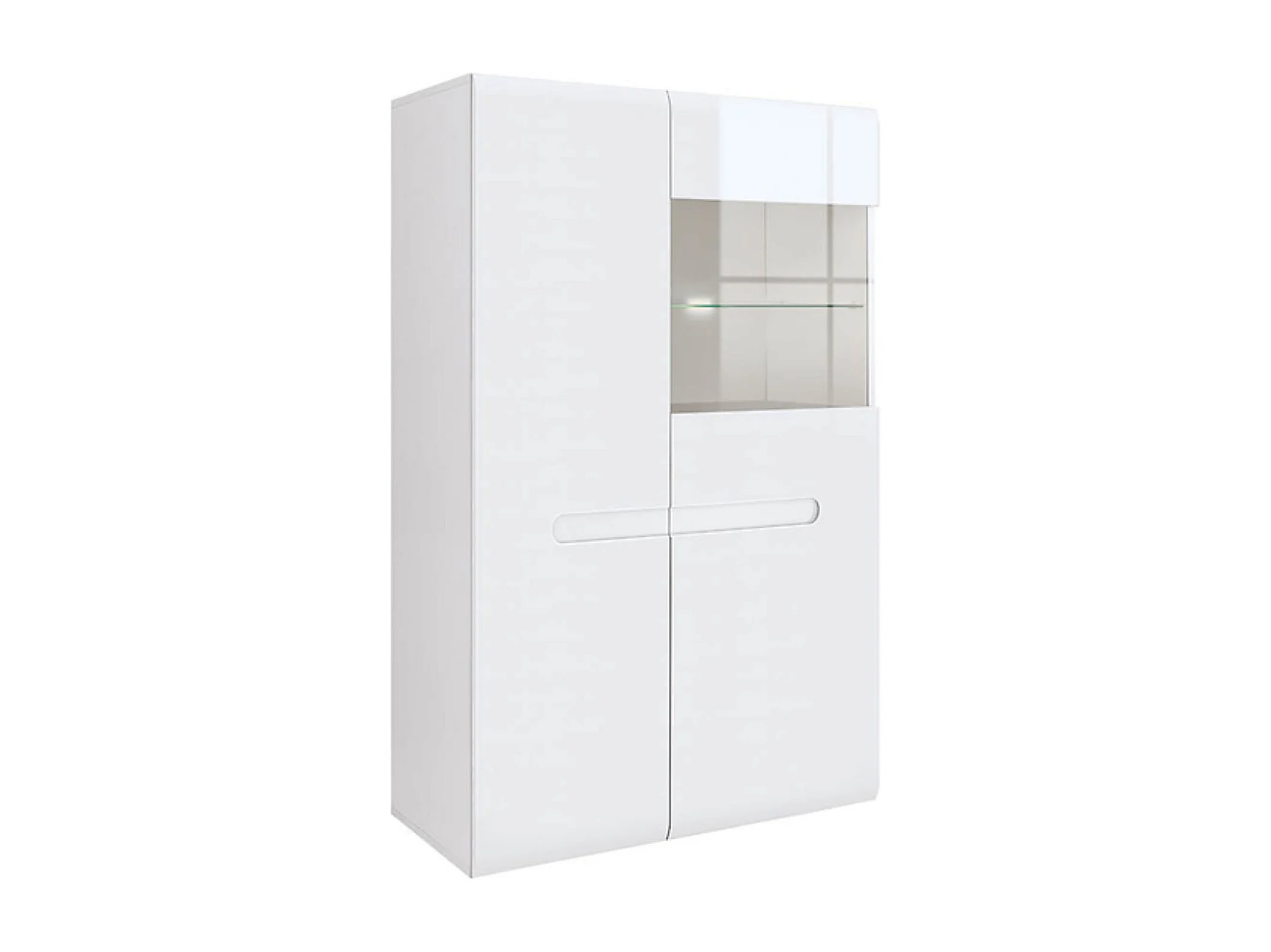 Vitrine à 2 portes avec éclairage LED,coloris Blanc/Blanc haute brillance - Longueur 90 x Profondeur 41 x Hauteur 145 cm