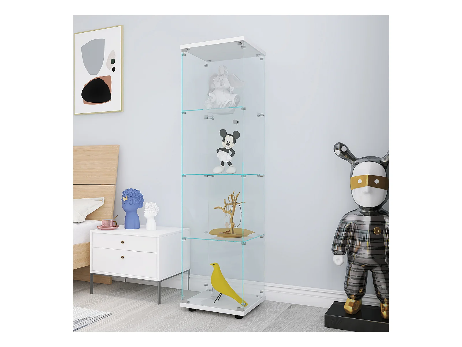 Vitrine à 4 niveaux, vitrine transparente for figurines, vitrine en verre trempé avec porte, blanc