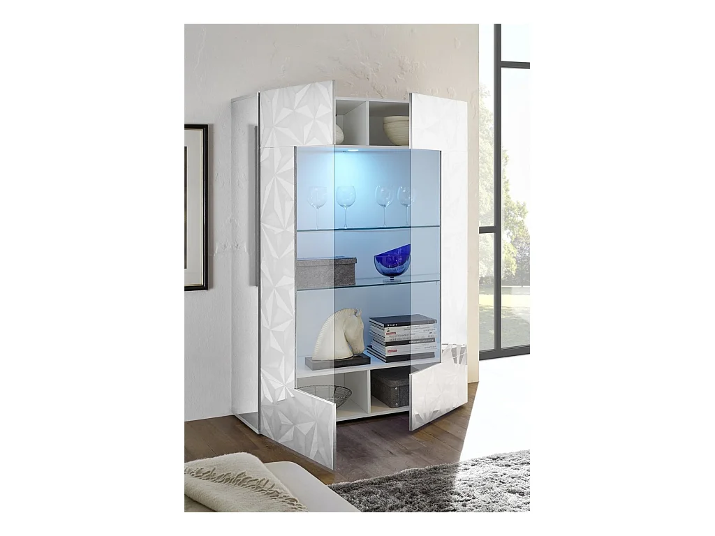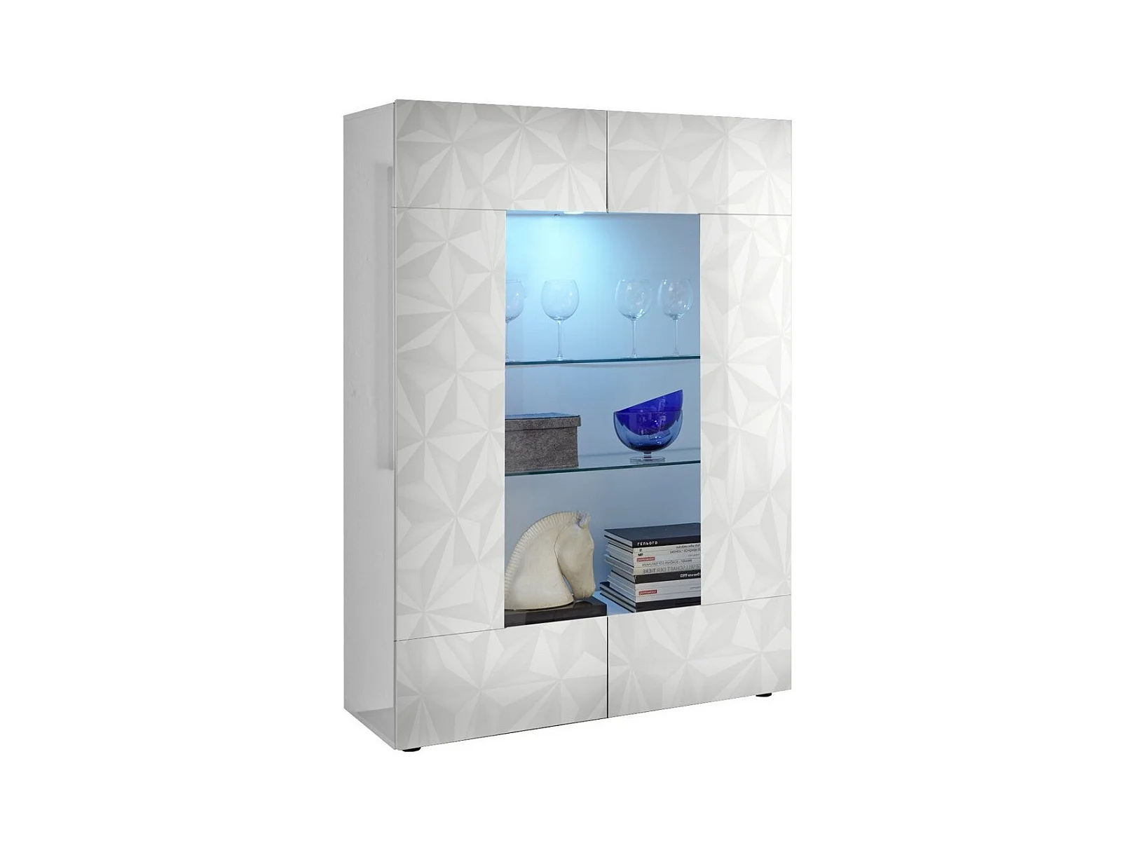 Vitrine à LED 2 portes bois laqué blanc brillant Pagar L 120cm