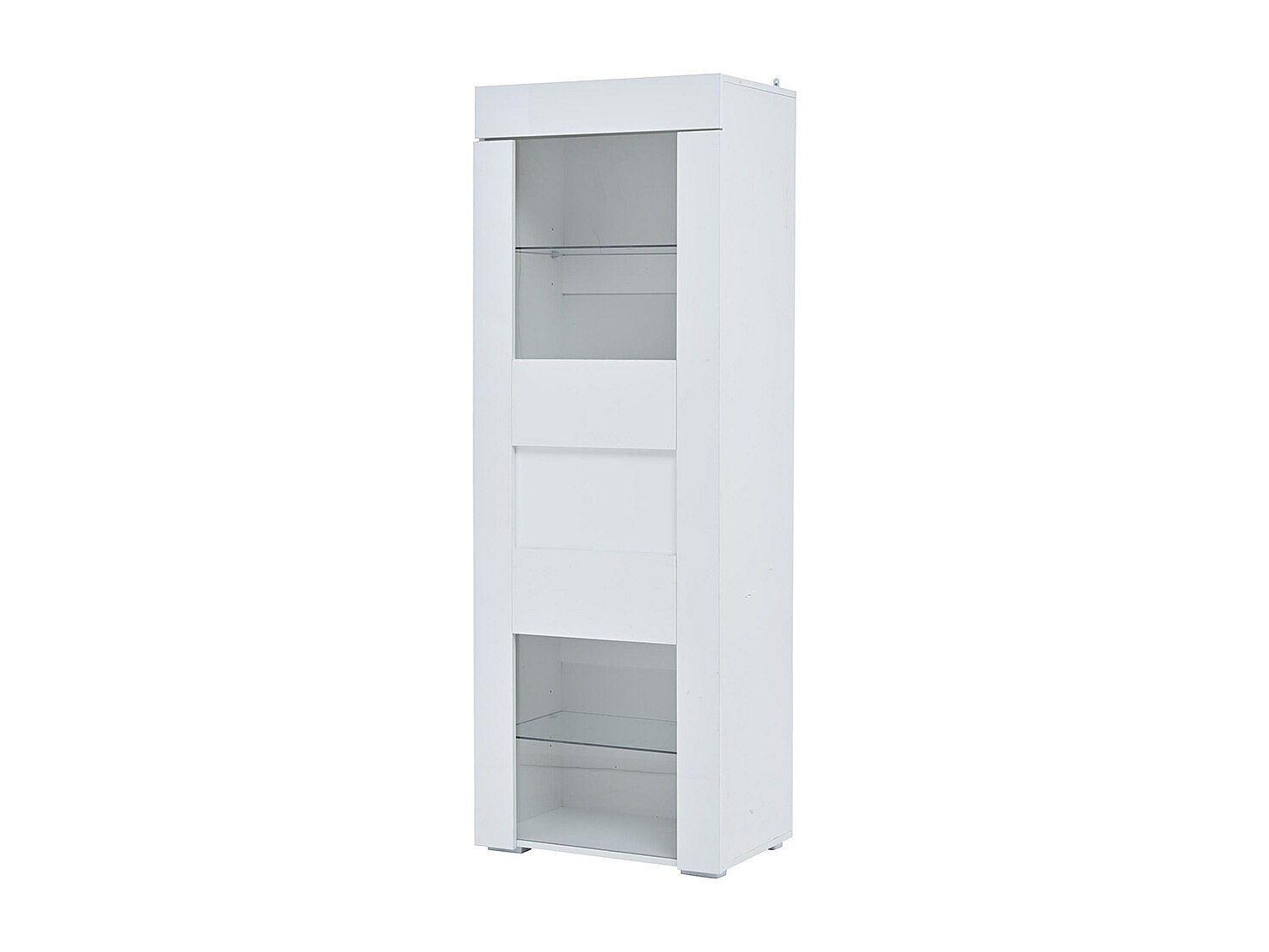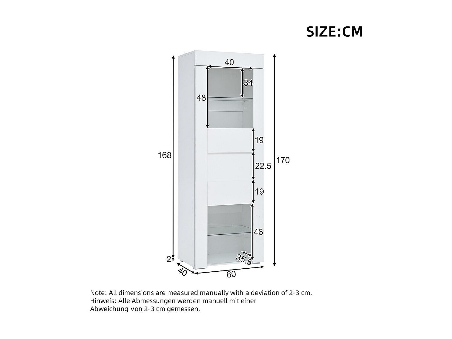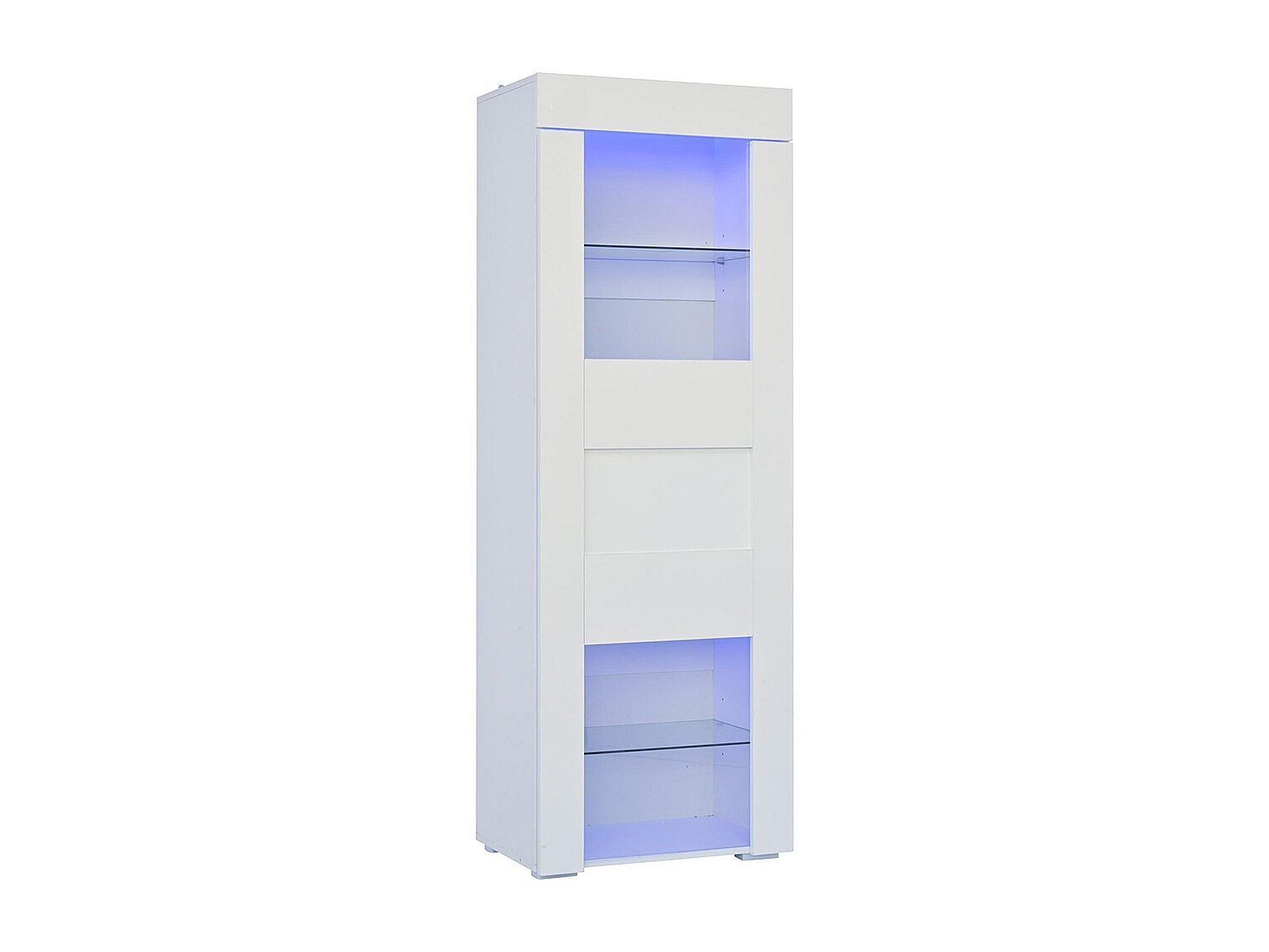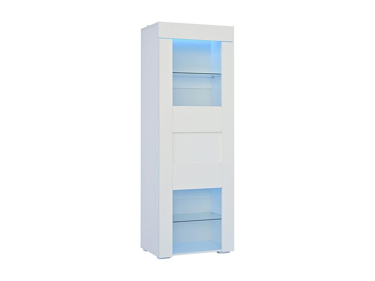 Vitrine haute avec 3 tablettes en verre, corps en MDF blanc laqué, LED inclus - 55x38x166cm