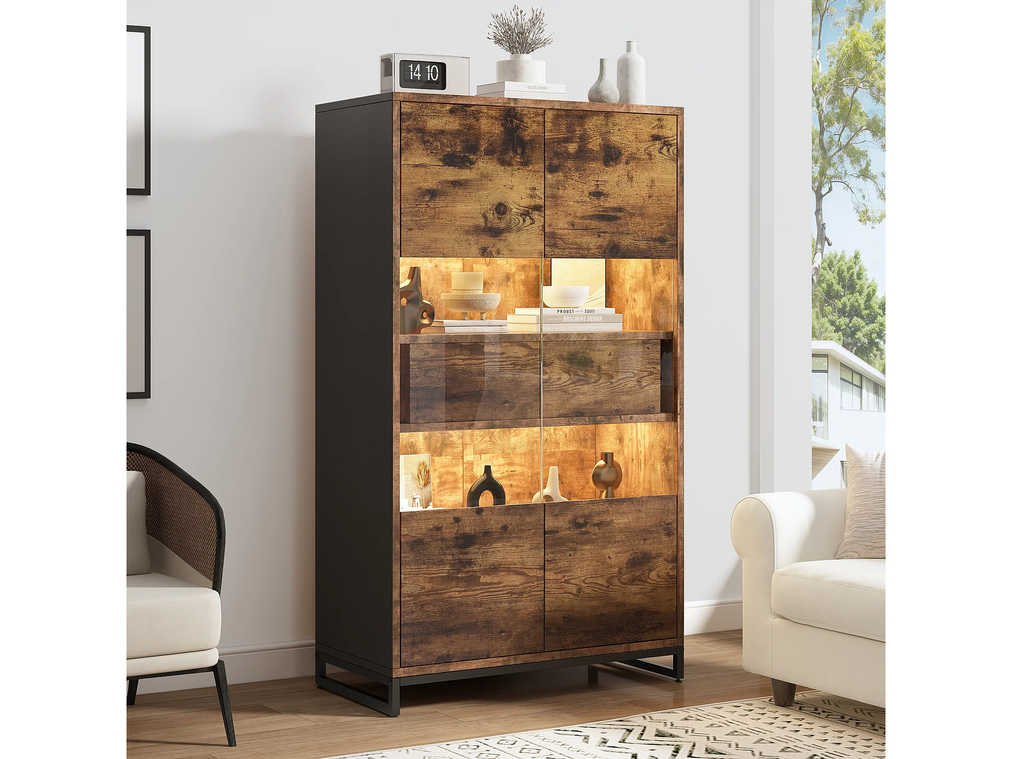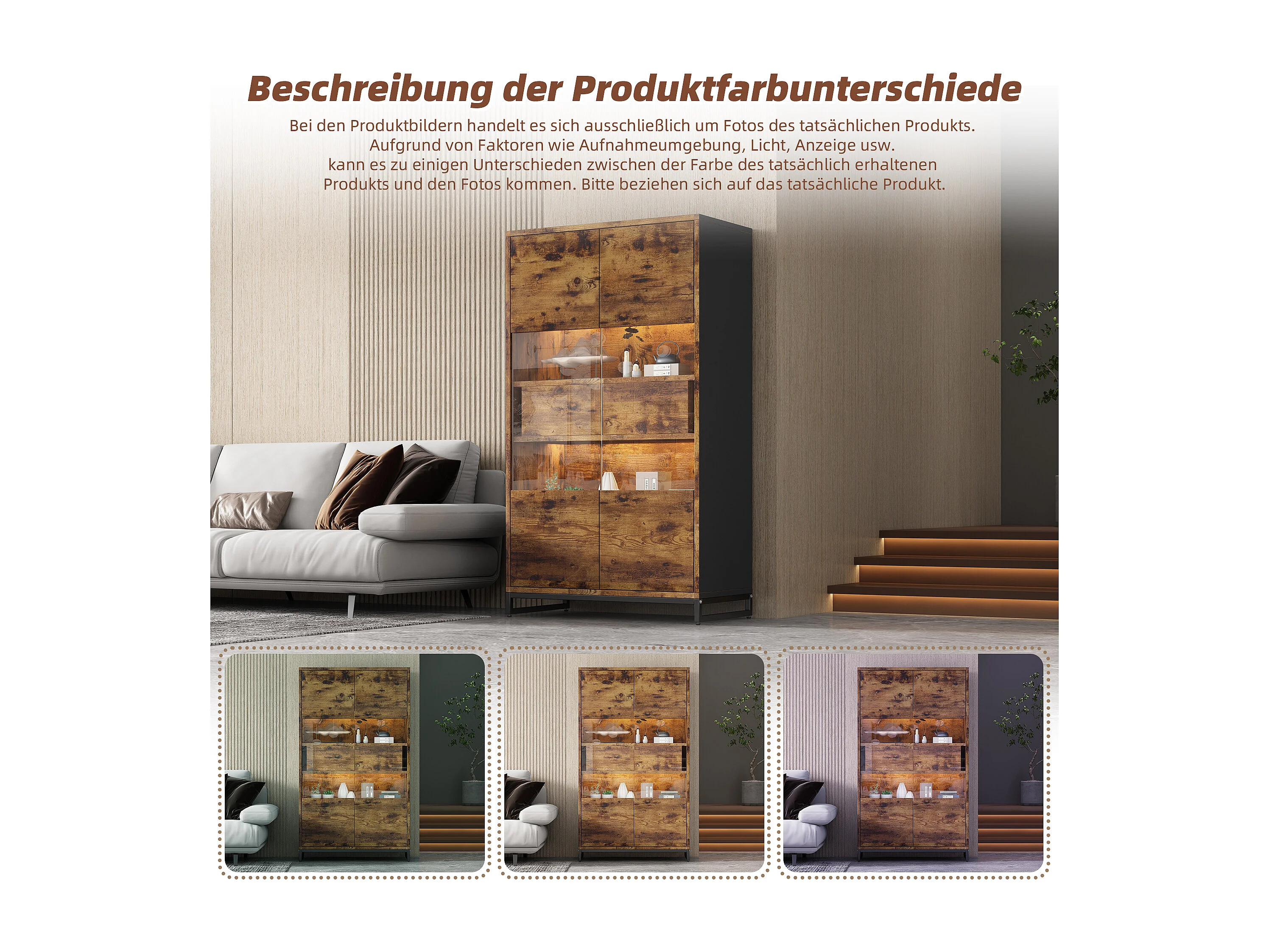 Vitrine avec LED, 4 portes, étagères ajustables, noir et bois (80x40x138 cm)