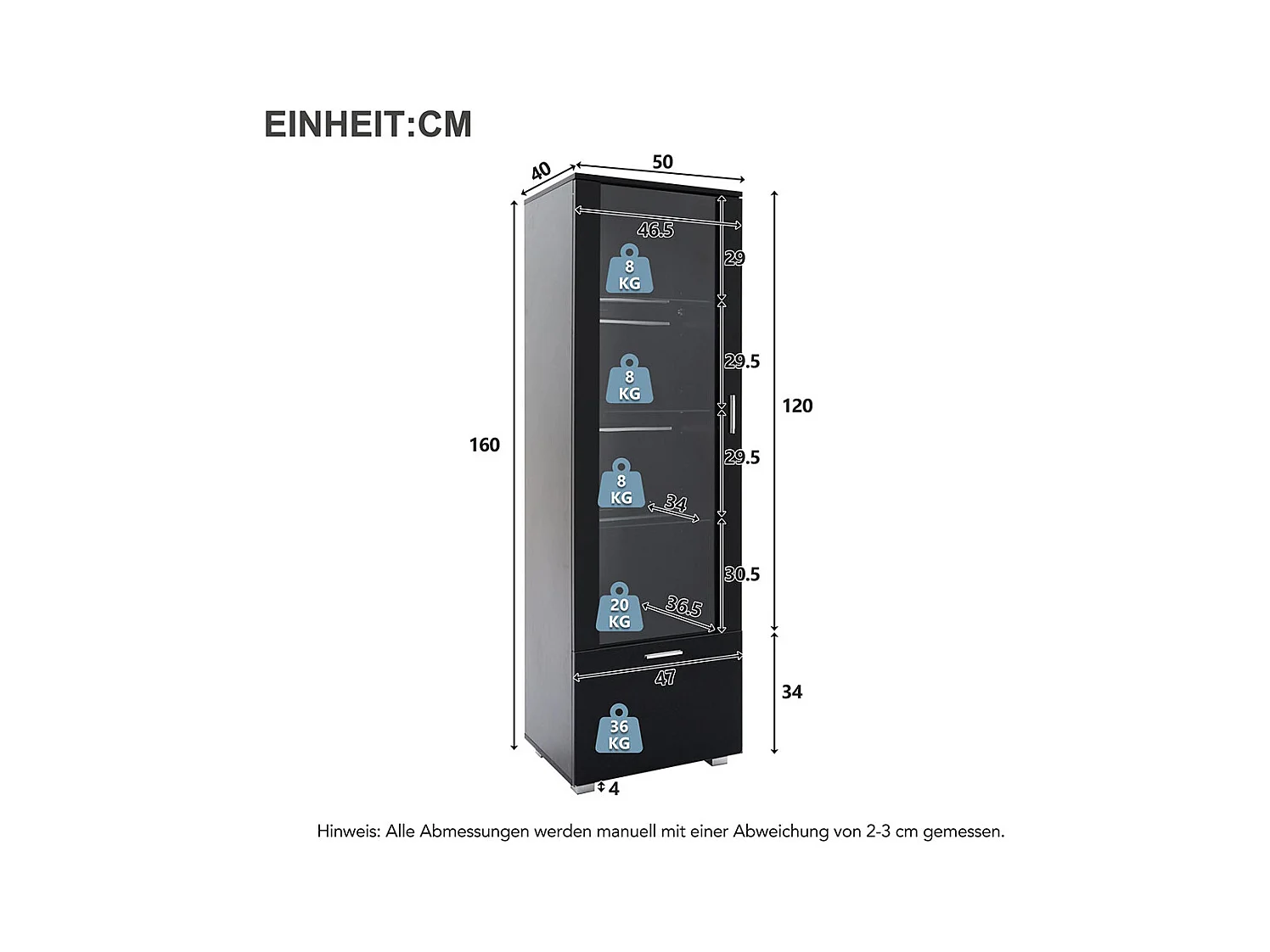 Vitrine pour Salon Salle à manger en Noir avec LED 40x29x165cm Luke V5