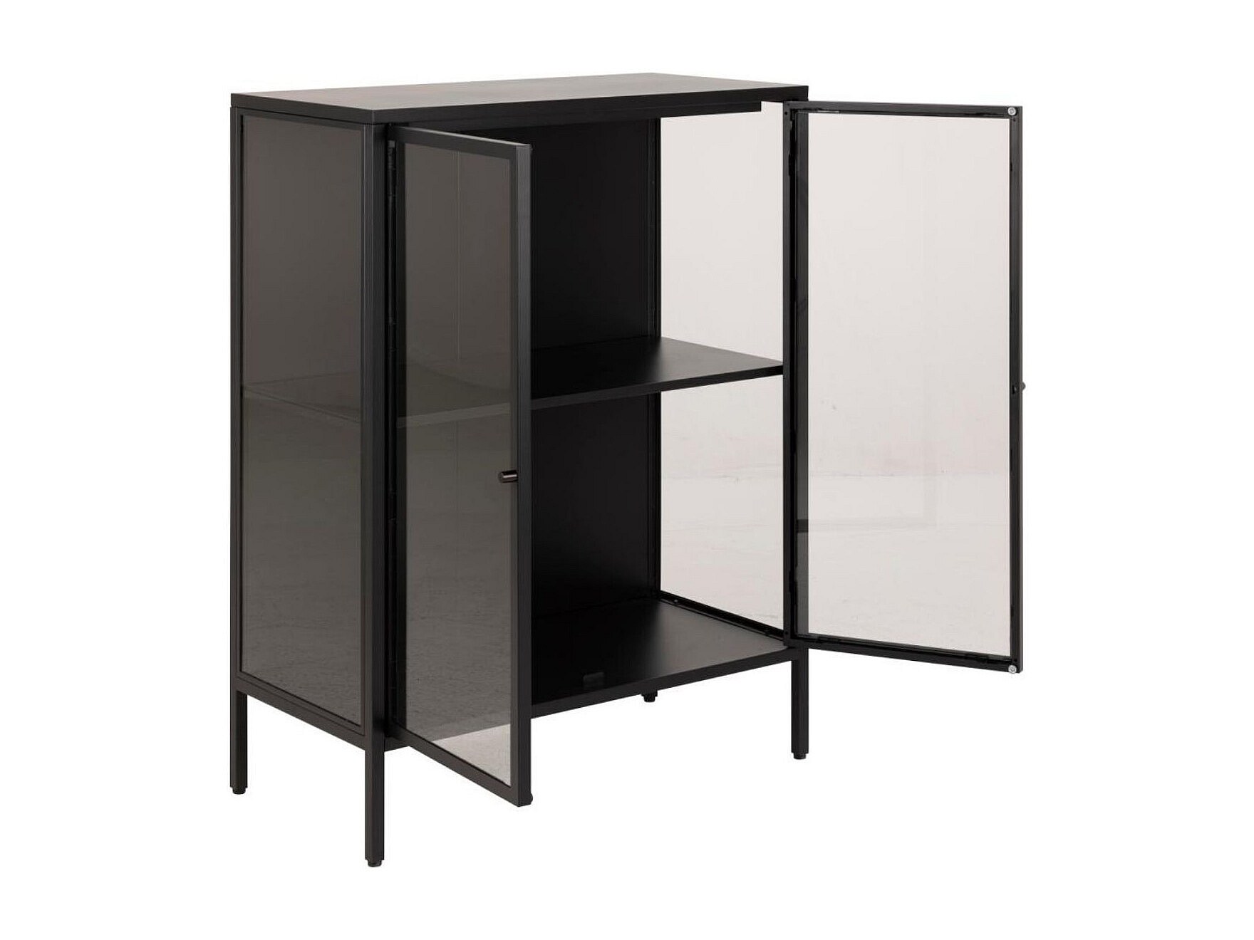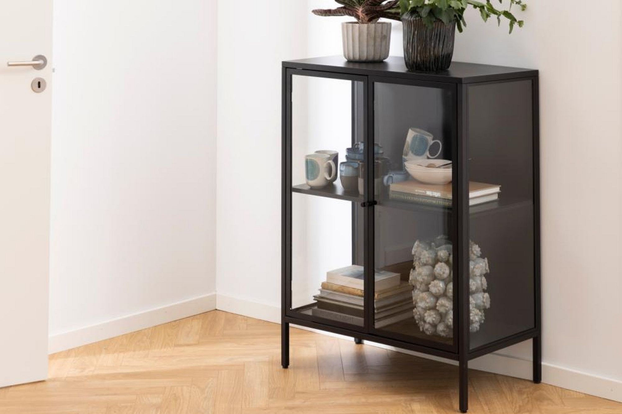 Vitrine basse scandinave en métal noir 2 portes vitrées - HARLOW