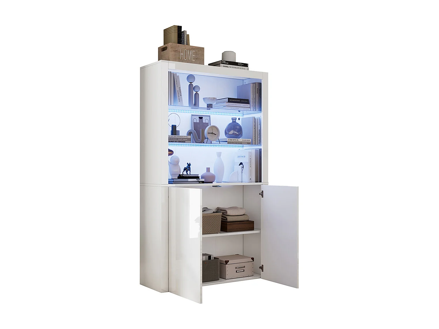 Vitrine buffet appoint armoire rangement brillante éclairage LED verre trempé verticale salon blanc