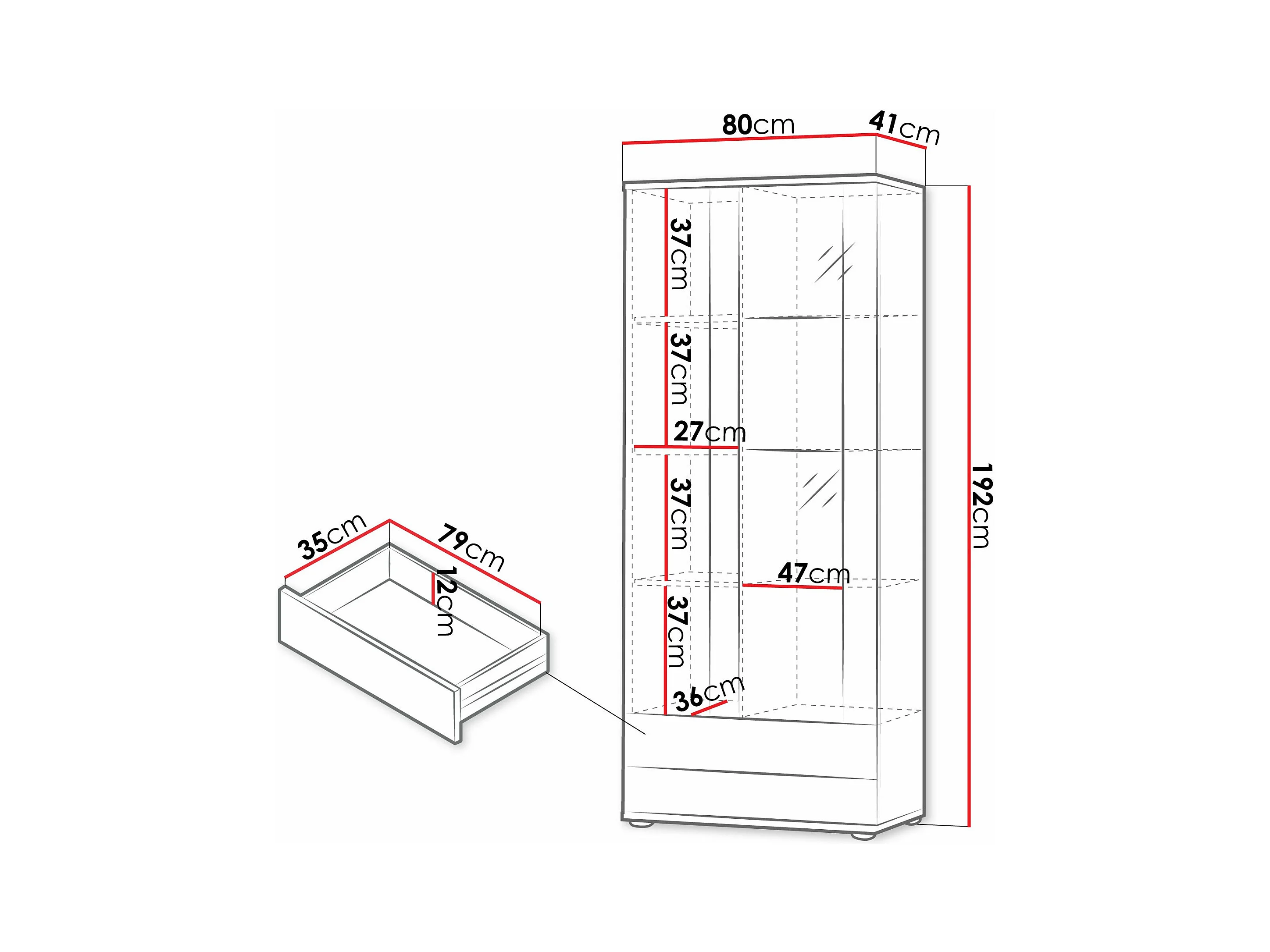 Étagère Tornola 105, Avec des portes|Fermé|Avec tiroirs, Verre|Stratifié, 192x80x41cm