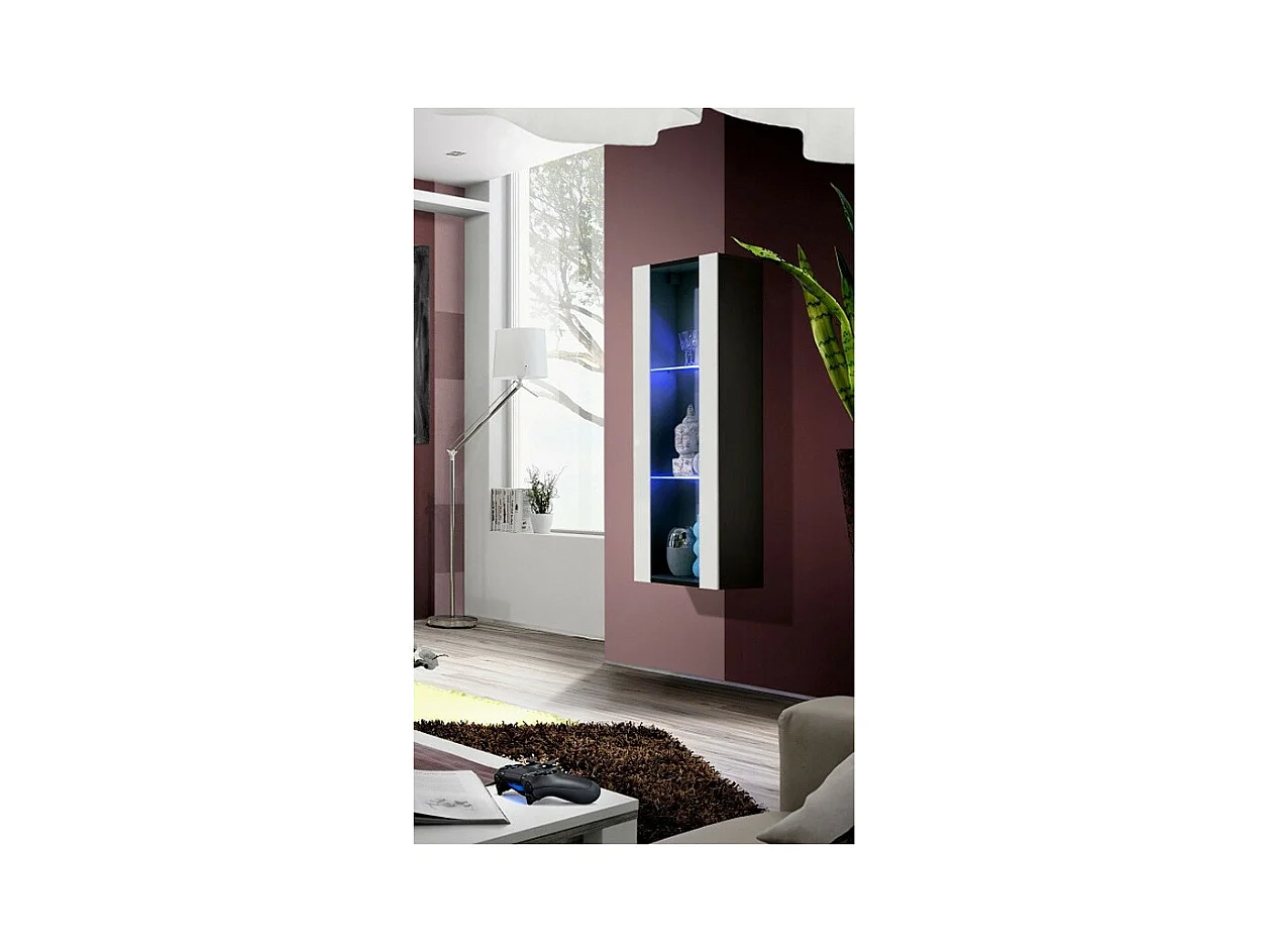 Vitrine LED Murale Design "Fly II" 126cm Blanc & Noir